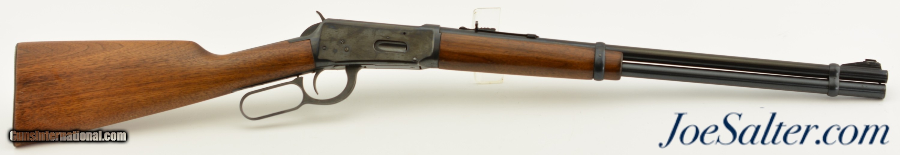 Description: Serial #1907392, .32 Win. Spl., 20" barrel with a very good bore that has freckling within the grooves. This is a 1952-made carbine that retains 70-75% of the original blue, with the majority of the loss occurring on the left receiver flat where the finish looks to have been intentionally removed prior to some work that was never performed. The walnut stock and forend are in fine condition with only minor handling marks and scratches scattered about the slightly flaked original varnish, and the checkered steel buttplate is in fine shape. The front sight hood is no longer present, and the carbine rates very good plus condition overall. FFL or C&R SOLD |