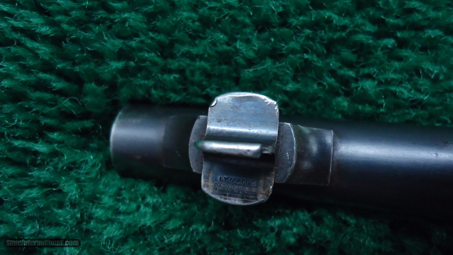 Description: Special order features include a 26 inch rapid taper half round half octagon barrel chambered in 25-35 WCF caliber. Very good bore with sharp rifling. Sights include a ramped Lyman front sight with a filler in the rear and a folding tang sight. Most original thinning barrel blue remains. Receiver has some blue in the protected areas with the balance a brown/gray color. Good traces of case color on the hammer and lever. Special order un-checkered pistolgrip walnut stock with a shotgun butt and a hard rubber buttplate. This is a hard to find configuration that will no doubt fill a hole in your Winchester 1894 collection. An early rifle made in 1899. Leroy Merz Antique Firearms specializes in antique and vintage Winchesters and other fine American firearms. Since 1965 Mr. Merz has taken part in the world of firearms and has been a contributor to many well known reference books. We have hundreds of additional guns in every price range at our home online. Search for Merz Antiques in google. SOLD Curio/Relic: Yes Rifle Caliber: .25-35 Winchester |