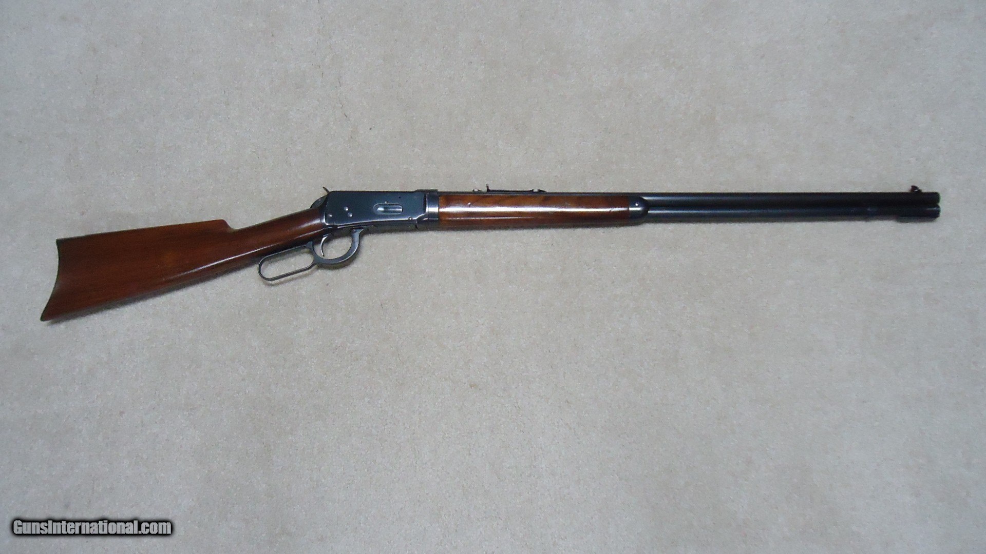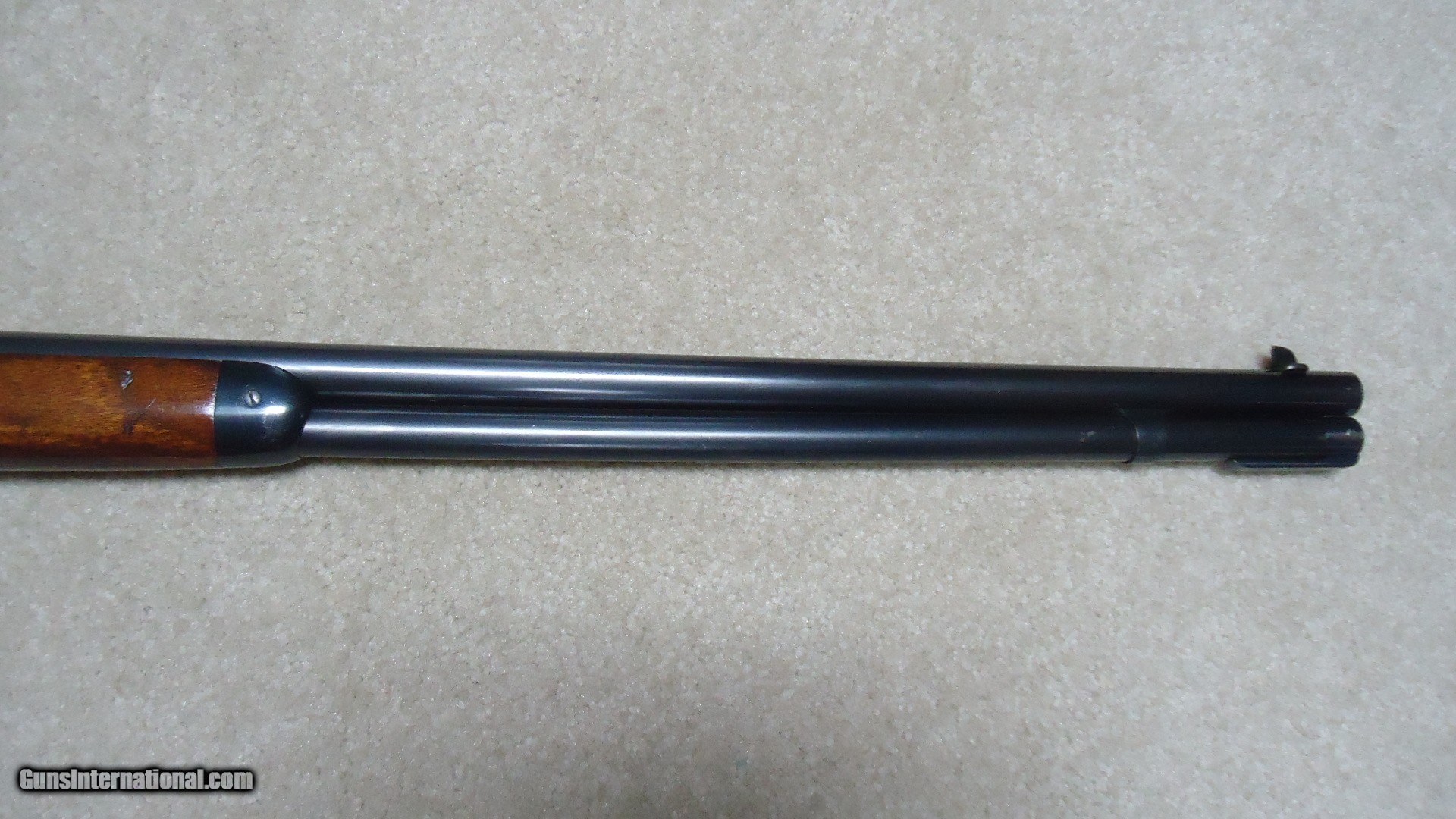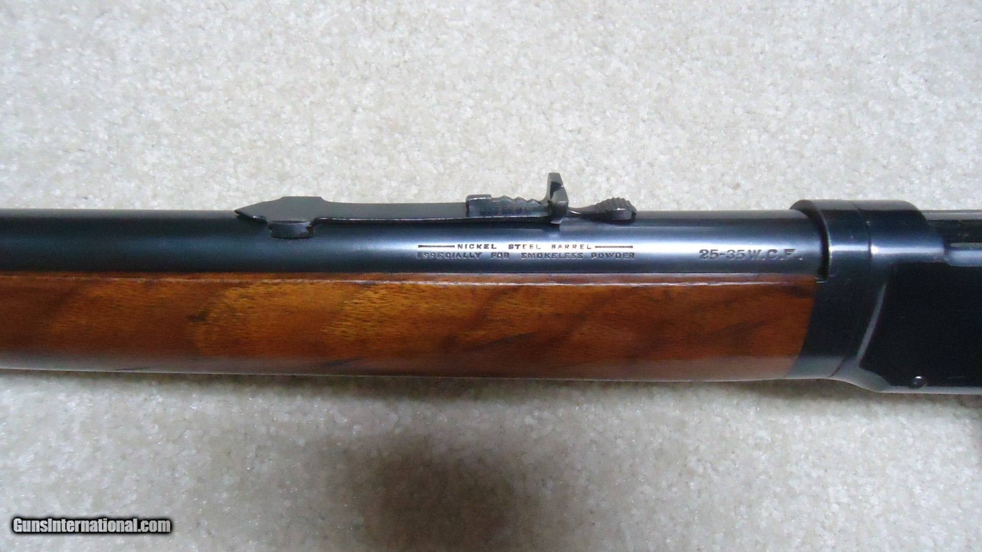 Description: SUPERB CONDITION 1894 TAKEDOWN .25-35 ROUND BARREL RIFLE, #880XXX, MADE 1918. This fine rifle in desireble .25-35 caliber shows about all the blue on the entire receiver with only aa few light surface scratches on the left side that are very minor. The barrel and magazine also show about all the blue with the lightest of wear. Even the forend cap and takedown ring by the receiver retain about all the bright blue. Needs only the filler screw in the tang which for some reason is missing. Exc. wood with only a few handling marks, tight takedown, tight action with strong safety half-cock, minty bright bore. A difficult caliber to find in a rifle- it seems more .25-35s were made in carbine form- especially in takedown. Rifles from the late teens and 1920s usually have some or most of the receiver blue flaked to gray. This one is truly outstanding. SOLD Curio/Relic: Yes Rifle Caliber: .25-35 Winchester Manufacturer: WINCHESTER Model: 1894 TAKEDOWN Serial Number: 880XXX Barrel Length: 26" ROUND Condition: EXCELLENT Bore Condition: EXCELLENT |
