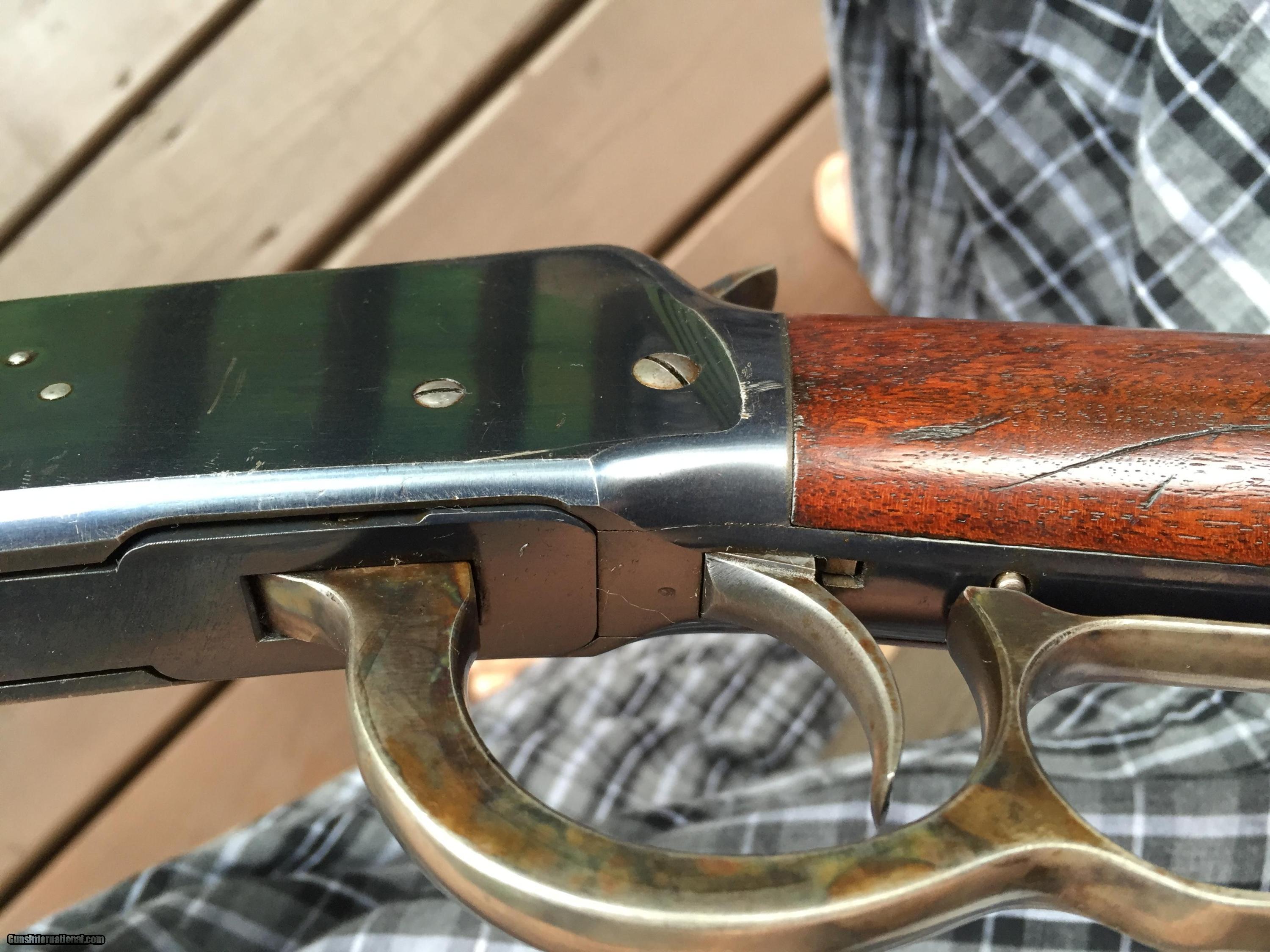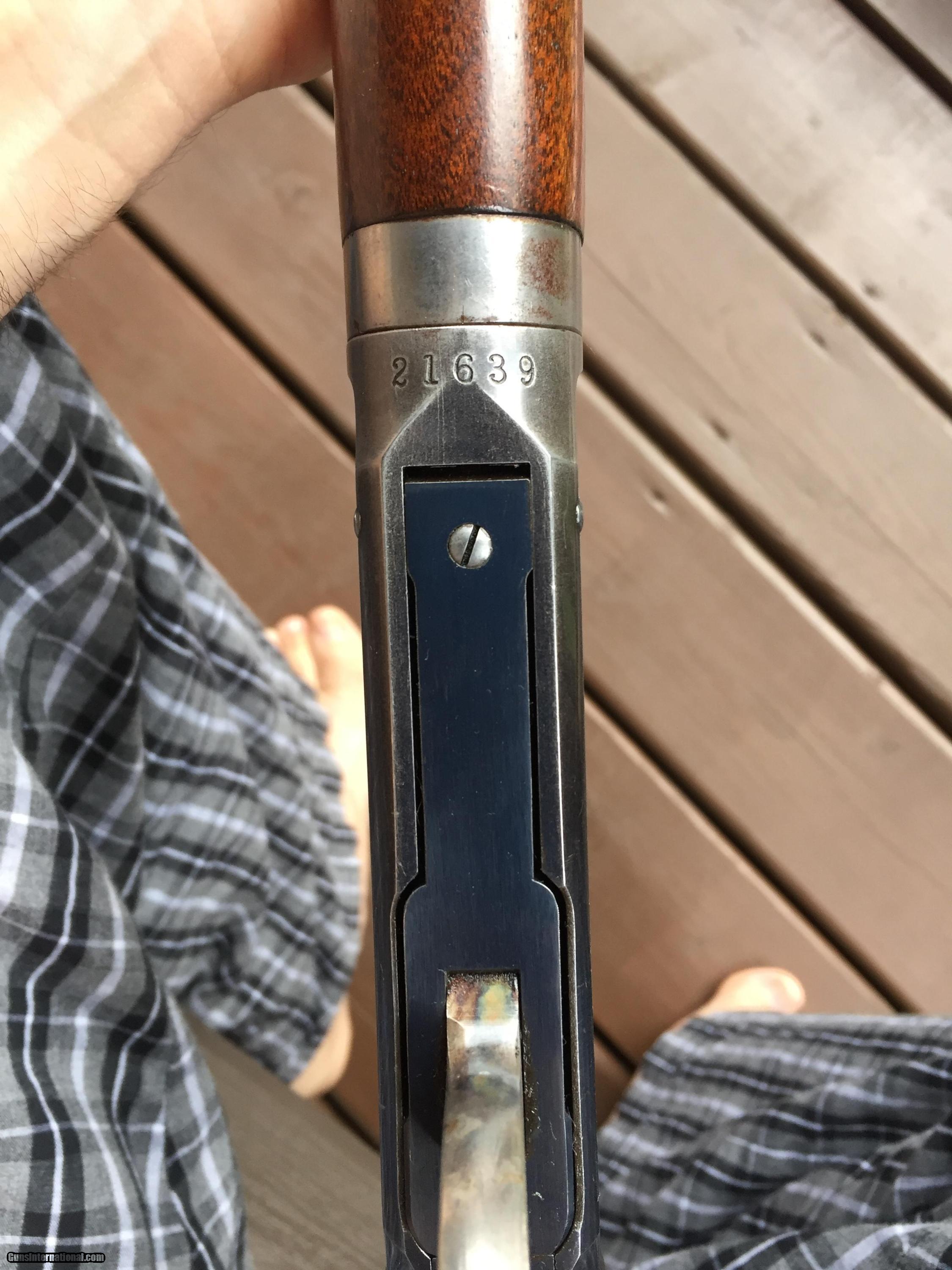 Looking to sell a real nice antique Model 1894 Takedown rifle. Serial number 21,639. From my personal collection. According to the Cody letter, this rifle was serialized on March 31, 1897. The rifle has a full 26 inch octagon barrel, half magazine, with crescent buttplate, and as noted, is in TD configuration. You do not see too many full octagon, half magazine rifles. Rear sight is a period replacement Lyman No 6 folding leaf sight, the front is a factory installed Lyman Globe No 5, ivory bead and post. The bead is partially broken, post is great. This is a real nice looking antique Winchester sporting rifle with beautiful grained wood. Has that kind of classy look you might expect to see on a gun illustrated in the Madis book. I would guess it is somewhere around 90% overall condition. The bluing is good and dark as it should be, even real nice bluing remaining on nosecap which is something for a gun so old, and blue on lower tang is excellent, one screw on lower tang bit buggered though as can be seen, a cheap and simple replacement if so desired. Wear in the usual spots, i.e. the takedown flange. There is really nice case color remaining on both the lever and the hammer - even some lacquer remaining on the CC on the lever - and all the wood finish remains, and the wood is excellent with the exception of a few small marks on the upper left buttstock, not sure what they are from. The wood has some really nice extra grain, real nice grained wood on the gun. Very pretty. Only other issue is small patch of wear on the top of the barrel in front of the front sight. Not sure what it is from, maybe a blood spill at one time? You only notice it when you have it in hand, and it is not going anywhere, looks same now as when I bought the gun years ago. The bore is very good in the rifle. There is a very small amount of very light pitting partway down the barrel, but very shallow / minor, and the grooves are still nice and deep. Very good rifling in the gun. It should shoot very well.