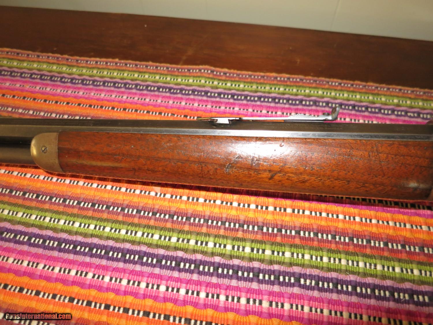 Description: WIN. 94 SHORT RIFLE. OB IS 18". WOOD IS GOOD WITH NORMAL HITS. NO CRACKS OR SPLITS. BARREL BLUE IS 60% & RECIEVER IS PATINA. CRESENT BUT PLATE. ALL MARKING VERY GOOD. 32 WS CAL. SN. 575XXX. MFG. 1911. CALL OR E-MAIL WITH QUESTIONS. SOLD |