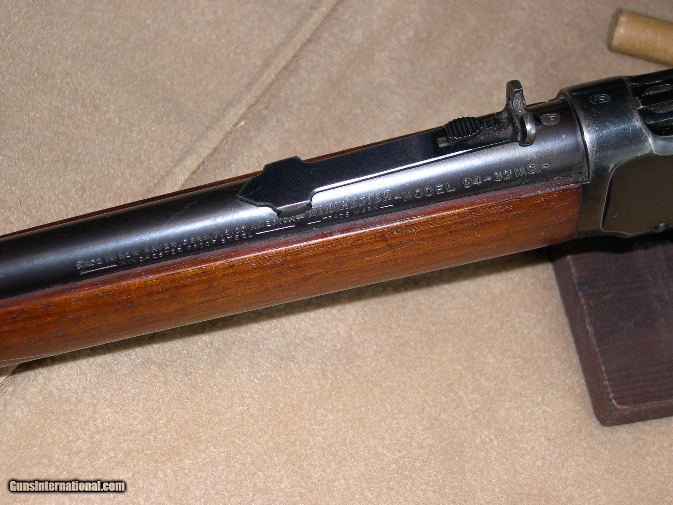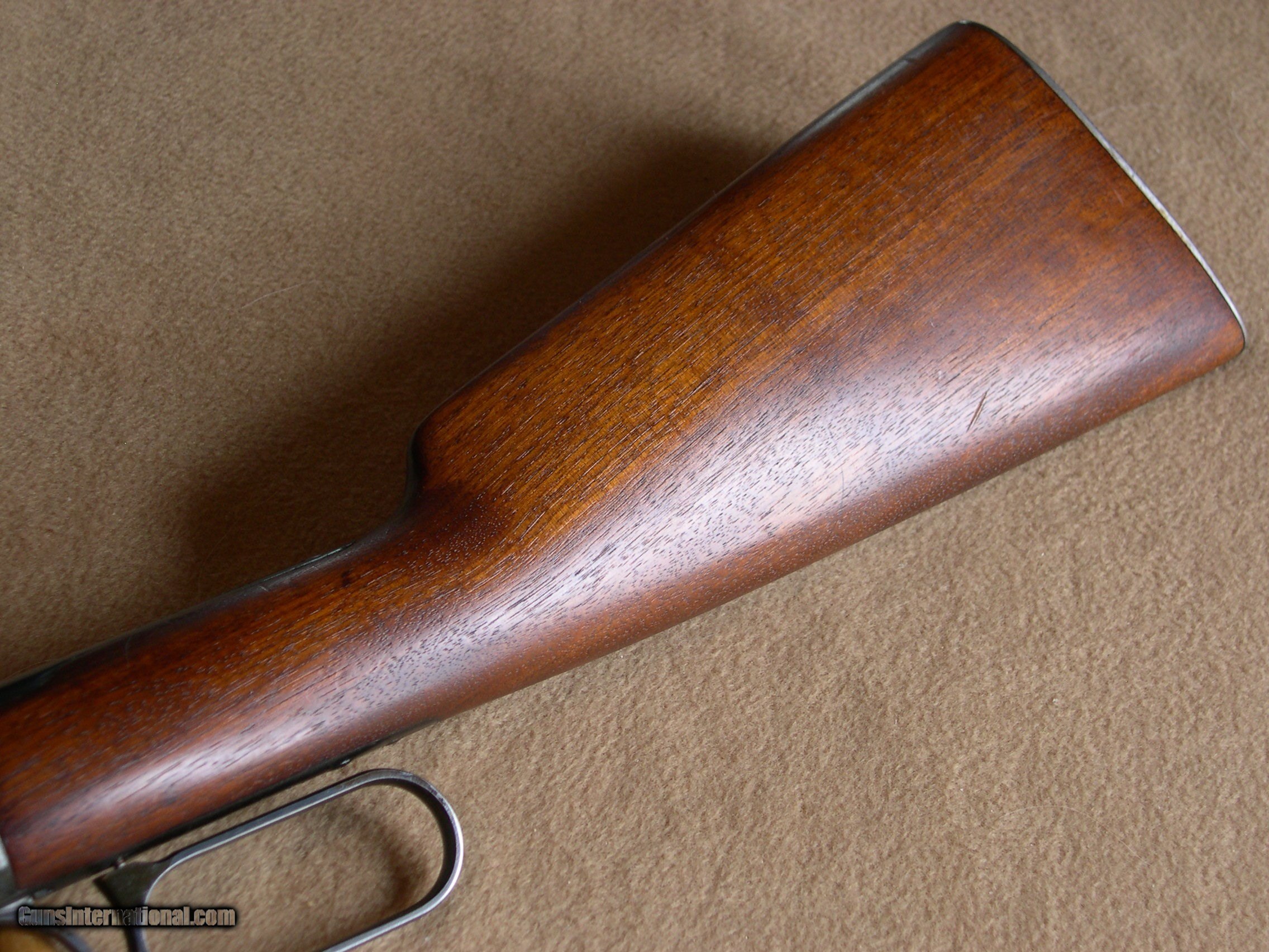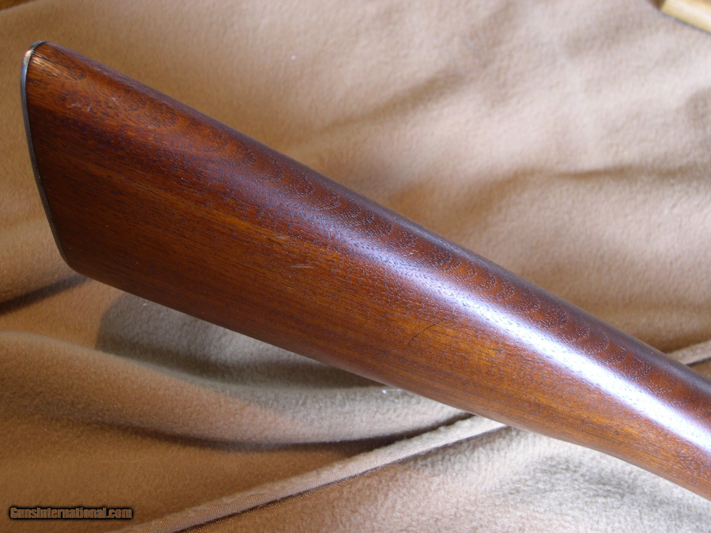 Description: This beautiful condition Pre war, 94 is in 32 Special cal, With 98% or better original blue finish, and orig varnish wood at 99%, Exc plus bore, nearly unfired. Original early shotgun buttplate, not the post war checkered steel BP. Sights front & rear are original w/sight hood on front. Pretty hard to find in this condition for pre war gun! SOLD |