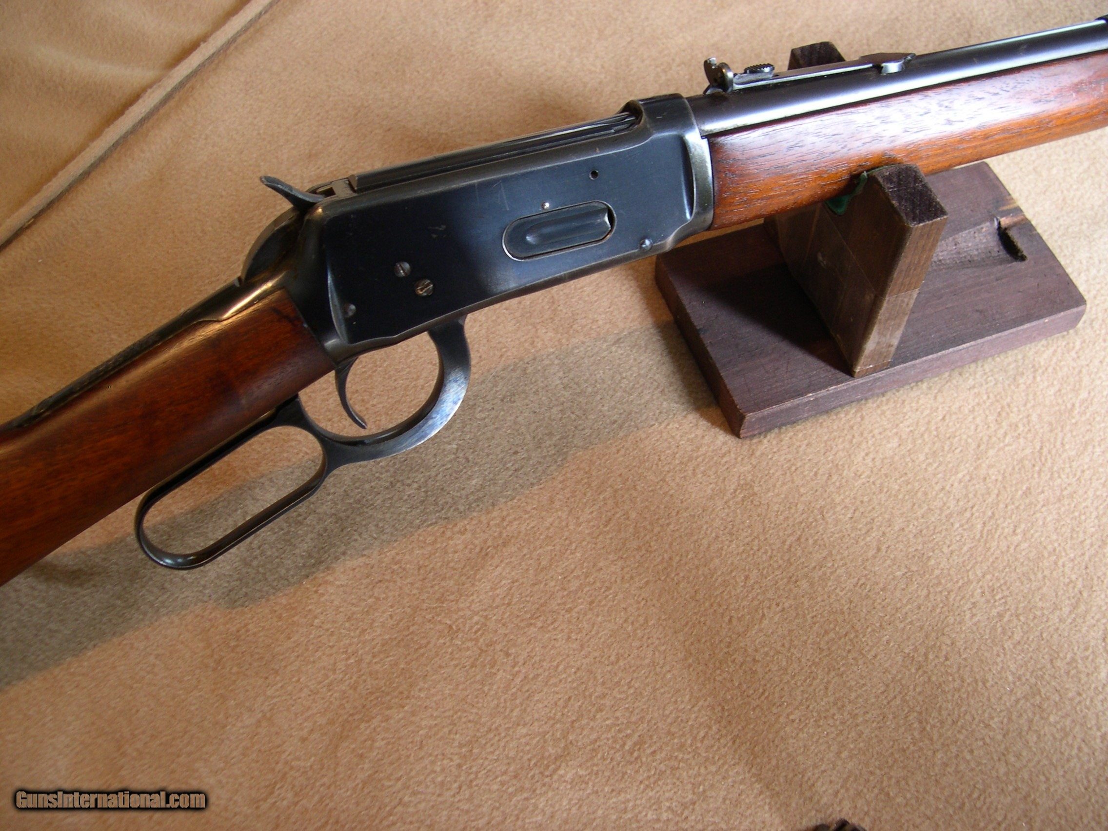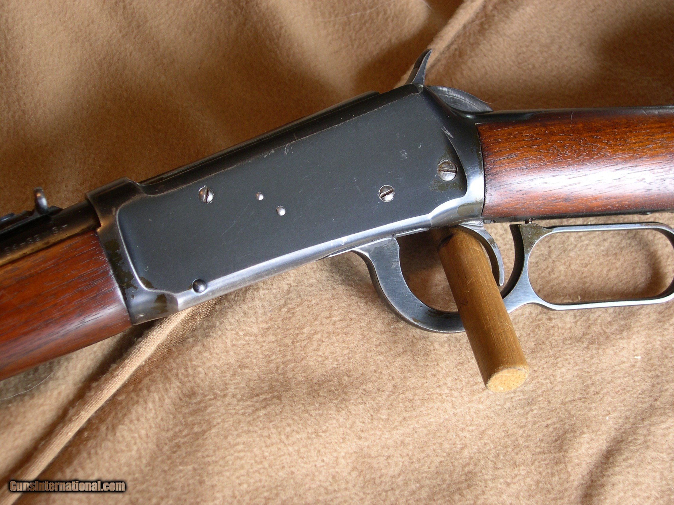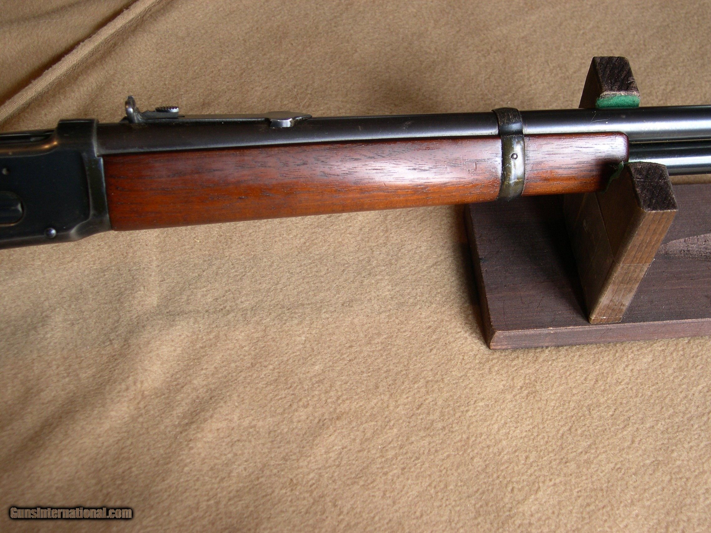 Description: This beautiful condition Pre war, 94 is in 32 Special cal, With 98% or better original blue finish, and orig varnish wood at 99%, Exc plus bore, nearly unfired. Original early shotgun buttplate, not the post war checkered steel BP. Sights front & rear are original w/sight hood on front. Pretty hard to find in this condition for pre war gun! SOLD |