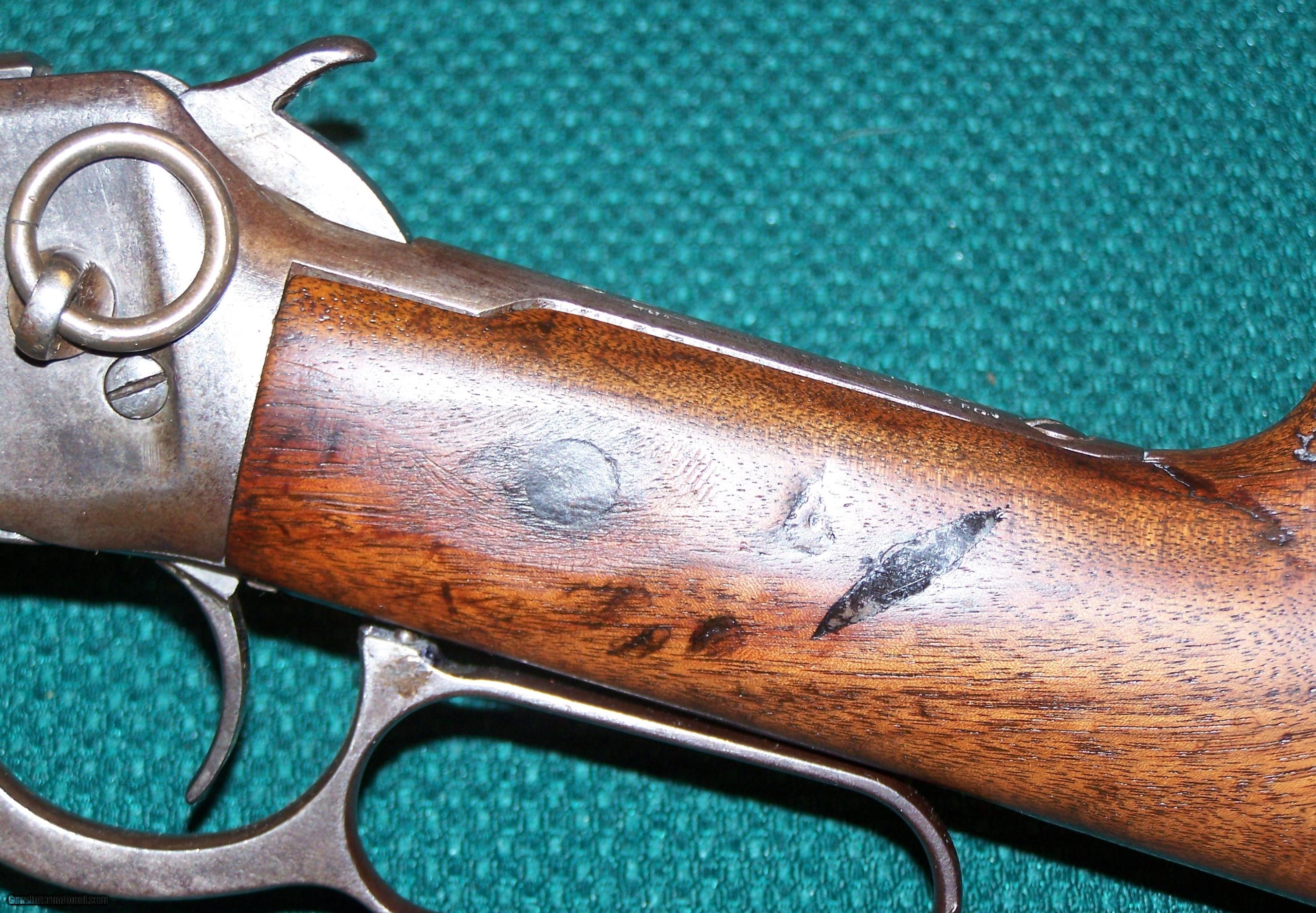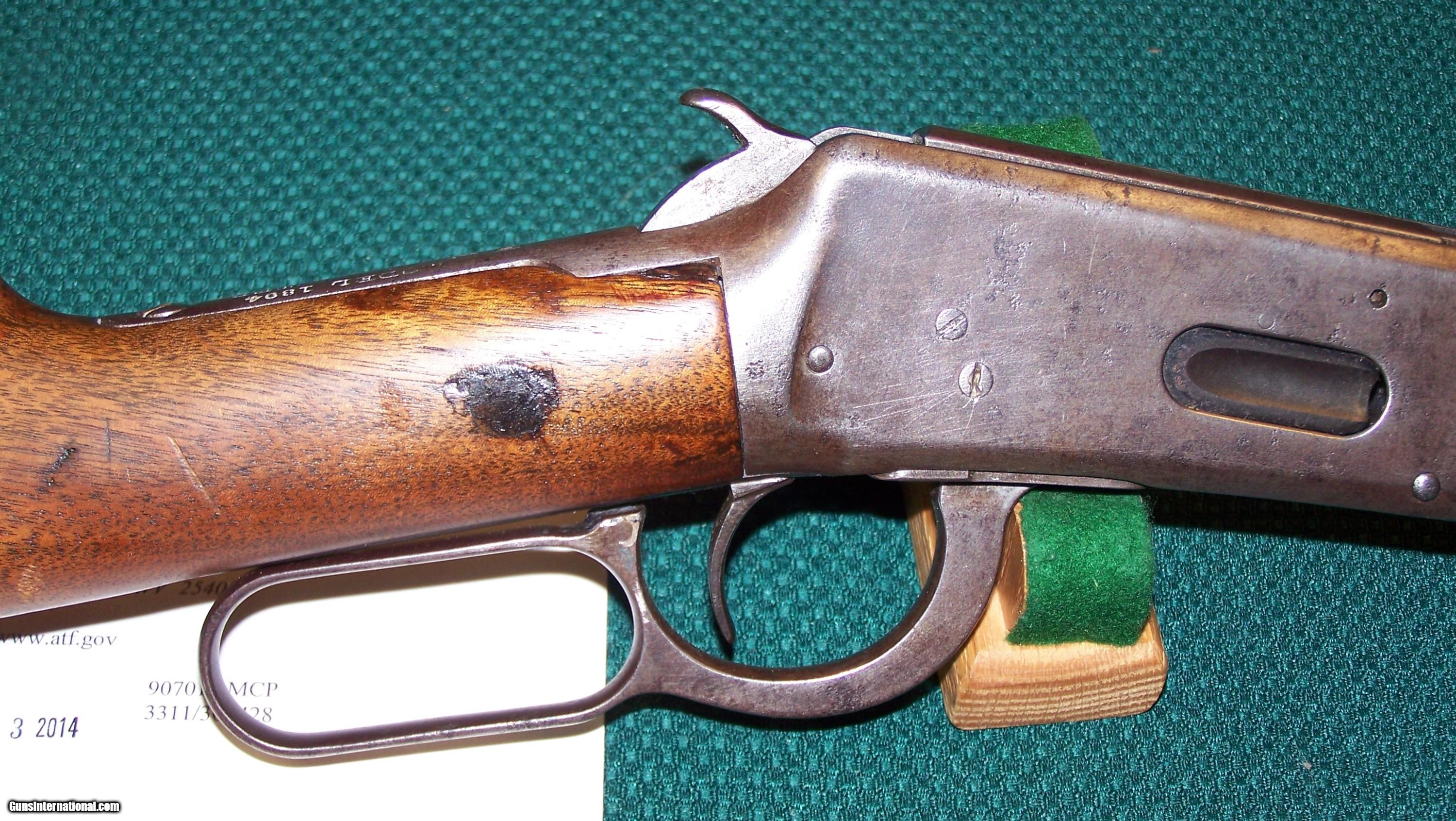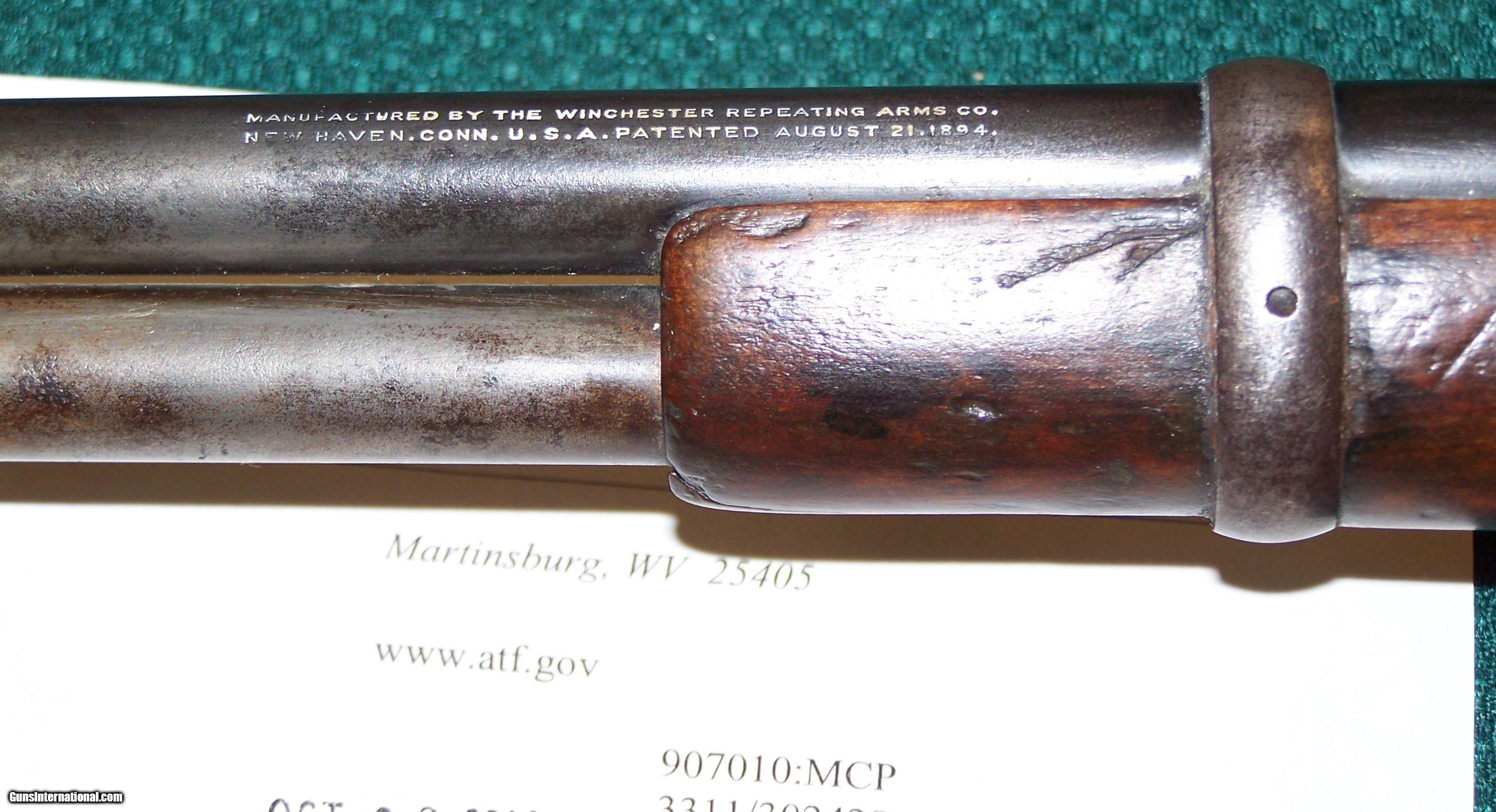 Description: 1894 cleared 15" trapper .30 WCF, manufactured 1918. Gun is totally unmolested , but well used.Stocks are gumwood which are correct for era. They show heavy use with a soild repair at the wrist. Bore is good metal is gray, sights are correct. Make no mistake this is not a closet queen, but a well used, soild 1894 15" trapper. Atf clearence letter is included. $4750.00 OBO. Any questions or comments call Greg 607-865-4370. SOLD Curio/Relic: Yes |