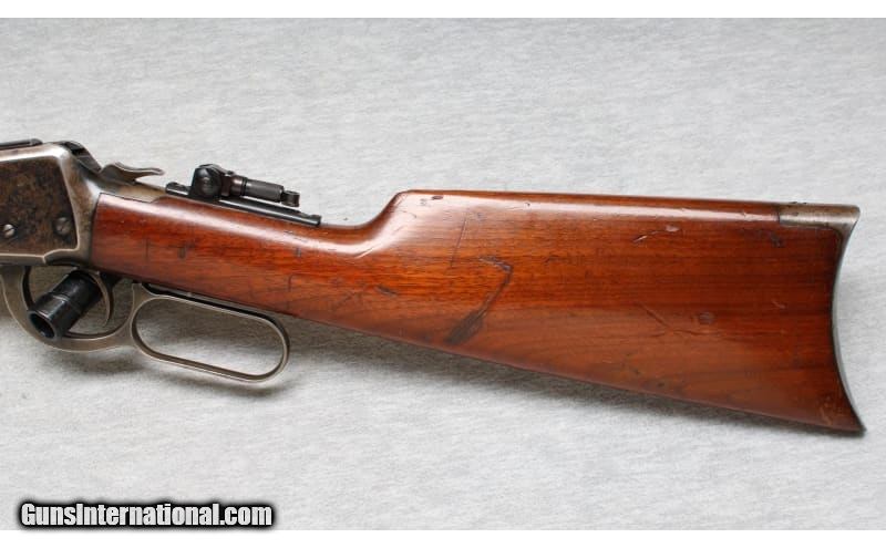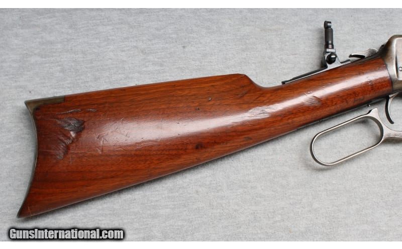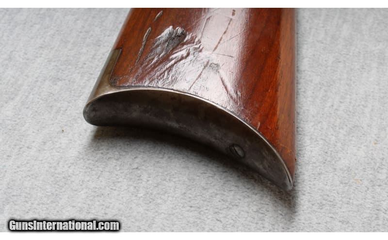Description: Fair condition, finish wear, nicks, scratches and light corrosion, Stock has numberous dents and scratches. 26" Octagon barrel with full length mag tube, dark bore with fair rifling, bead front sight, no factory rear sight, tang mounted peep sight installed. Manufactured in 1910. .25-35 WCF SOLD Curio/Relic: Yes Chambers: Lever action Metal Condition: Fair Wood Condition: Fair Bore Condition: Dark Barrels: 26 Triggers: Factory Stock Dimensions: 13" LOP Fore End: Smooth Butt Pad: Curved metal butt plate Item Location: Kansas City, KS |