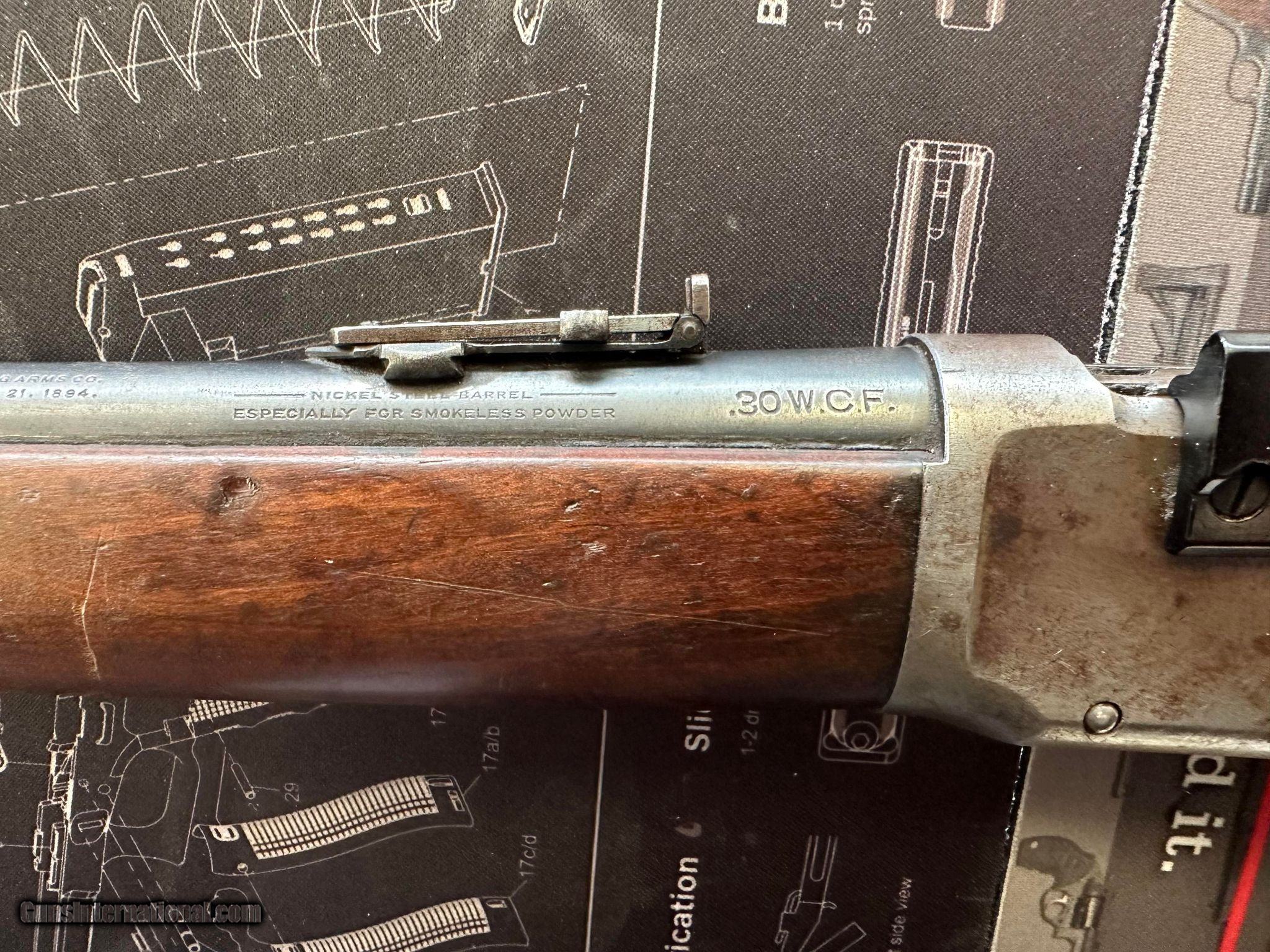Description: Guns Listing ID: 340887 Date per the serial number is 1915. A scope mounting system has been placed on it. Overall for a 100+ year old firearm it is very good condition. Great wall hanger or conversation piece. No paper work or anything to go along with rifle. Will find a soft case to much more safe shipping. Please look at the photos, in person its bounds and leaps better! SOLD Manufacturer: WINCHESTER Model: 1894 Caliber Info: .30-30 WIN Condition: Used - Non-Certified Barrels: 20 BARREL Action: LEVER ACTION Finish: WOOD AND STAINLESS Weight: not specified |