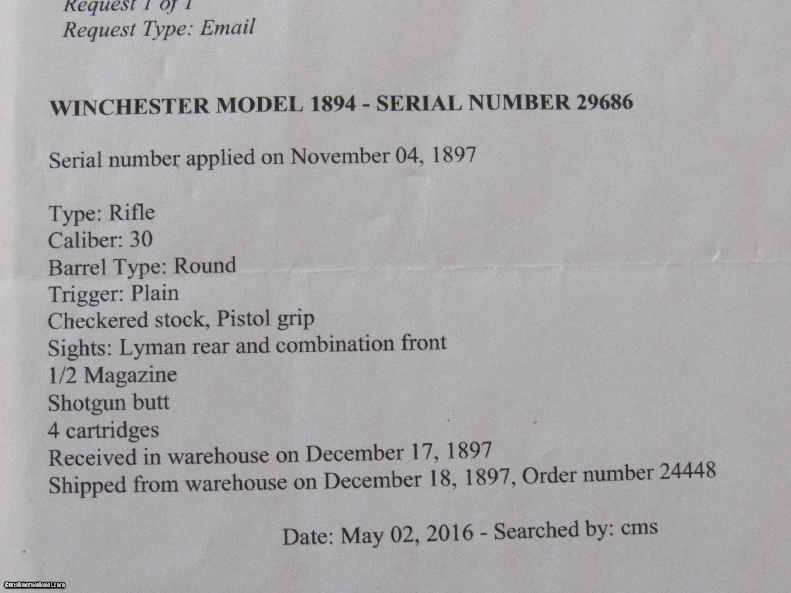 Winchester 1894 30 WCF DELUXE Pistol Grip Antique