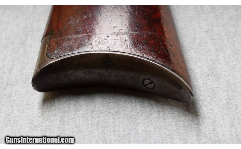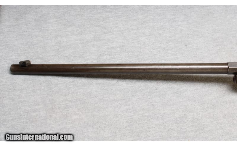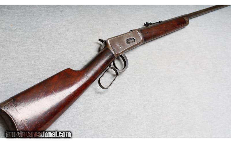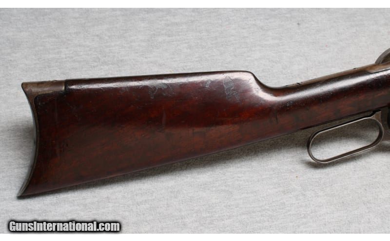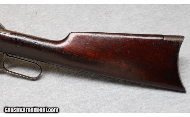 Description: Fair condition, significant finish wear, nicks, scratches and areas of light corrosion. 26" half octagon barrel with dark and fouled bore. Manufactured in 1905. .30 WCF SOLD Chambers: Lever action Metal Condition: Fair Wood Condition: Fair Bore Condition: Dark Barrels: 26 Triggers: Factory Stock Dimensions: 13" LOP Fore End: Smooth Butt Pad: Curved metal butt plate Sights: Iron sights Item Location: Rapid City, SD |