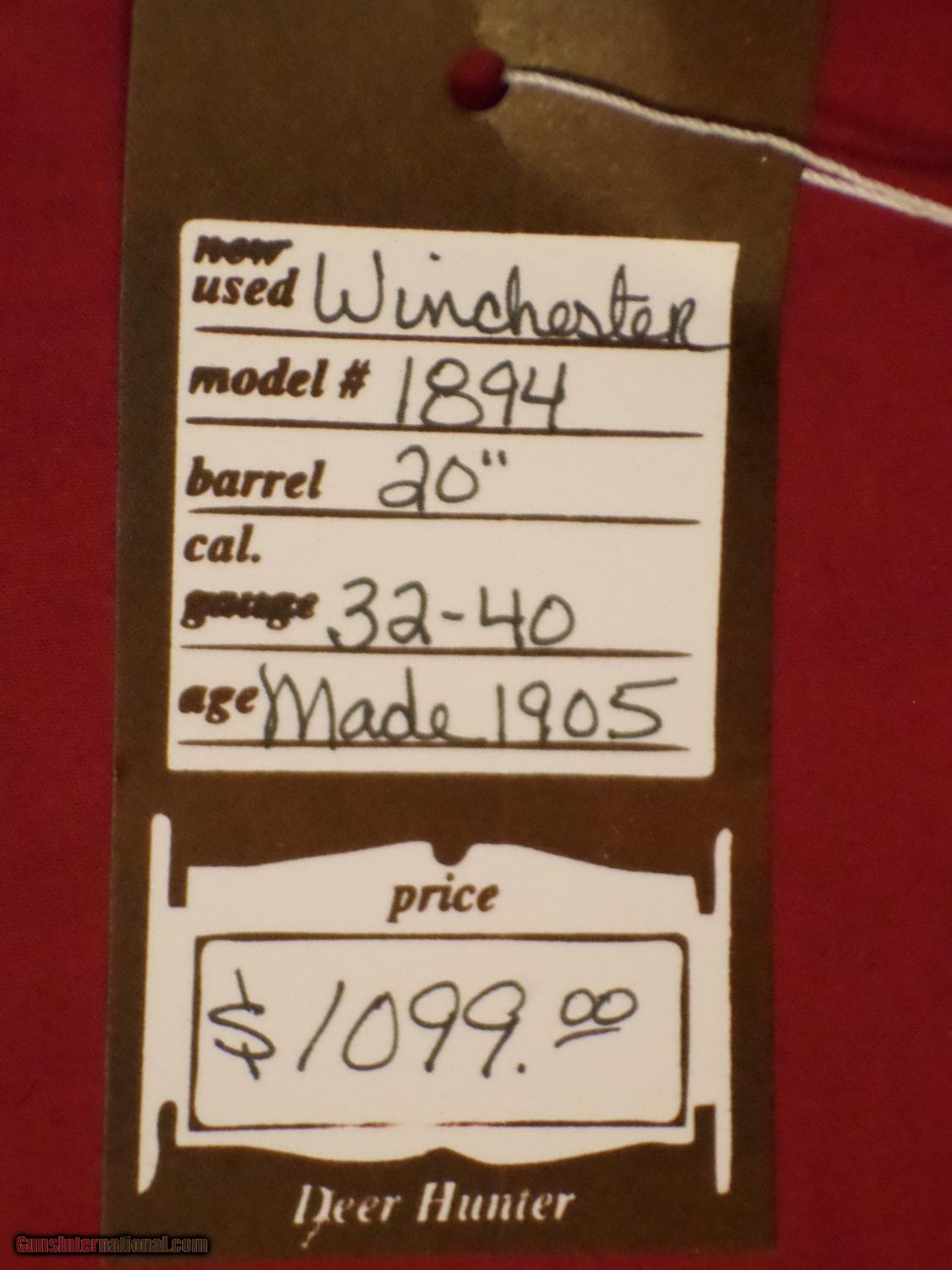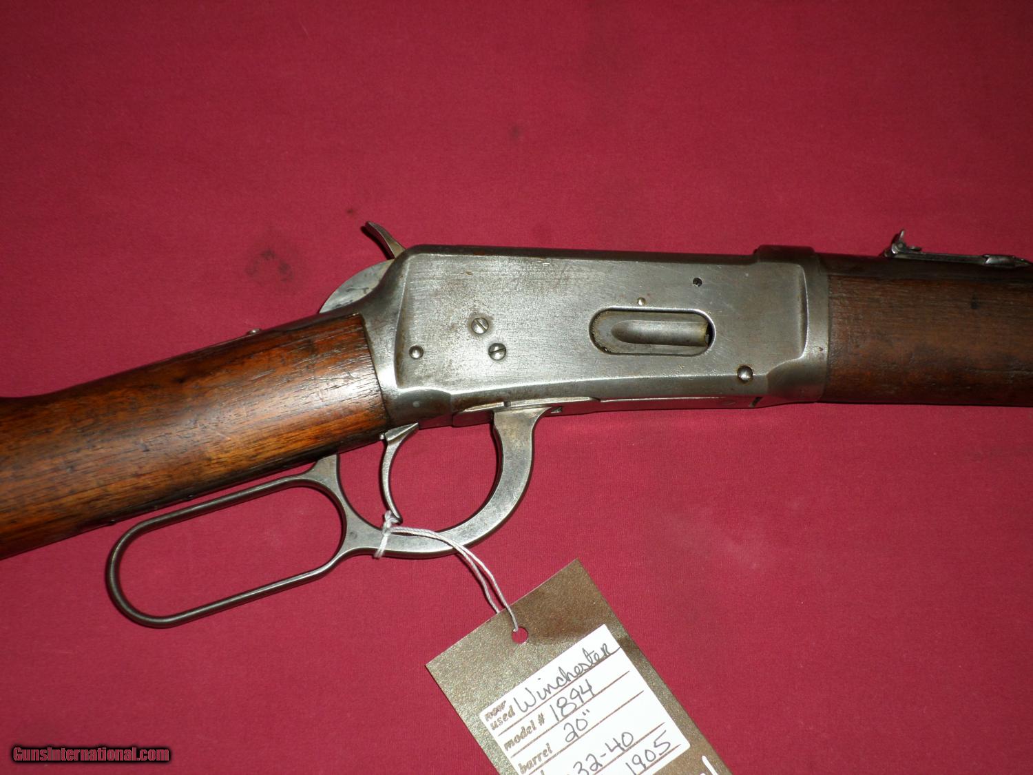 Description: SOLD For sale, Winchester 1894 SRC, .32-40 cal. 20" bbl. in very good condition, all original, missing saddle ring. Bore is good. A nice honest gun! Circa 1905 SOLD To see more of our inventory, visit deerhunterguns,com We accept MC, Visa and Discover, no AmEx. No Sales to California. Like us on Facebook: Deer Hunter Guns SOLD |