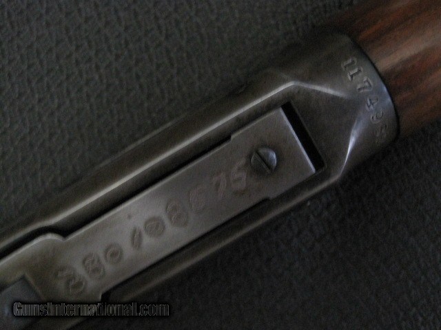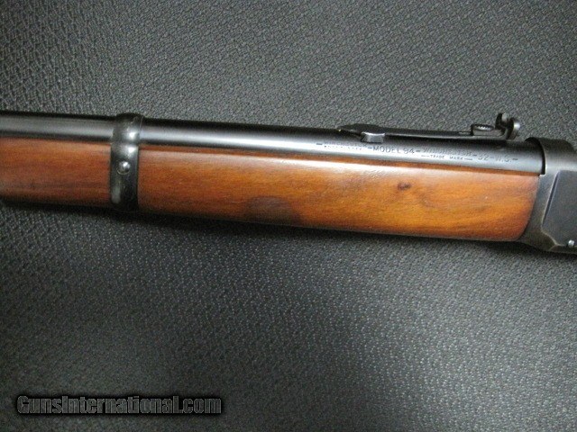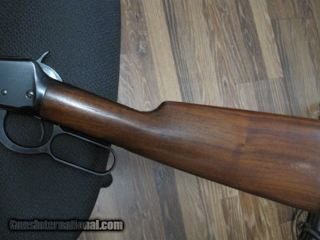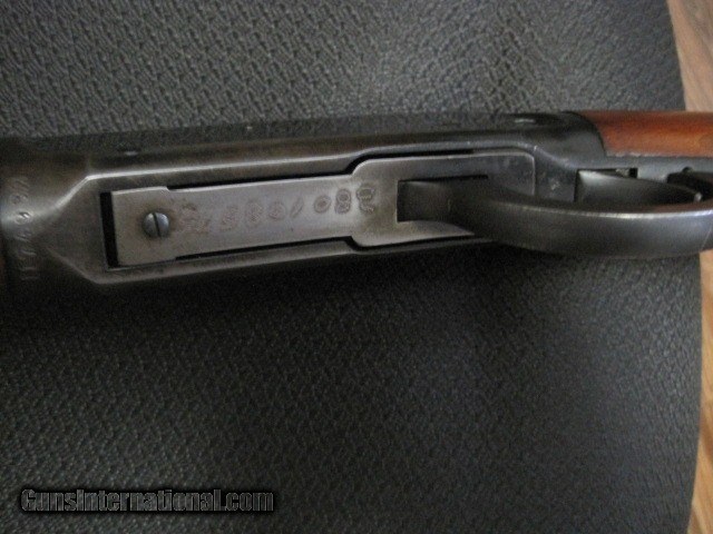 Description: --SOLD, pending funds--Winchester Pre War 32 special carbine. A little flaking of bluing on receiver, most of original metal finish is present. Barrel & mag are high 90% as well as receiver. There is, what looks like a drivers license number electric penciled on the bottom of plate in front of lever. This could be replaced or taken off & finished to match the rest of gun. Wood has a varnish added, looks good. Steel butt plate, serial 11749xx, makes it 1940. Excellent bore, a real nice 94 carbine. 25.00 to ship. SOLD Curio/Relic: Yes |