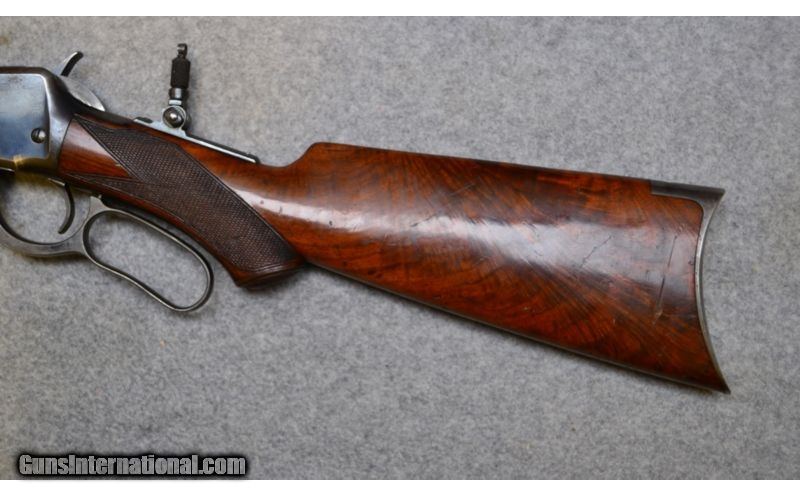 Description: The 1894 was designed by John Browning and is considered by many to be the ultimate development of the Winchester lever action rifle. The .32 Winchester special cartridge was a development of the .30-30 Winchester cartridge and was designed to improve some of its performance characteristics. This example comes equipped with an adjustable tang mounted sight. Condition is overall good with some noted wear on the bluing and dents on the stock. SOLD Curio/Relic: Yes Manufacturer: 1906 Caliber Info: .32 Winchester Special Chambers: 9 shot tubular magazine Metal Condition: Good with noted wear on bluing. Wood Condition: Good with scratches and dents. Bore Condition: Good with wear marks. Barrels: 26 inch. Triggers: Single action Stock: Semi pistol grip checkered stock. Stock Dimensions: LOP - 13 inch. Fore End: Checkered wood forend. Butt Pad: Metal butt plate. Weight: 8 pound 2 ounce. Sights: Tang mounted rear sight and bladed front sight. Item Location: Hammond, IN |