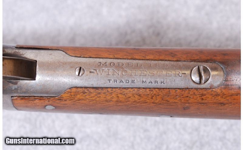 Description: 1894 Mfg. 1907 This one has it's screws. Rear sight has been replaced with a side mount Lyman 56. Stock has numerous cracks and dings. Eye stud for the saddle ring is there but the ring is missing. SOLD Curio/Relic: Yes Manufacturer: 1907 Caliber Info: .32 Winchester Special Metal Condition: Fair, much handling, blueing missing on barrels Wood Condition: Poor - fair many cracks and dings Bore Condition: Frosted bore with some shine left. Rifling is consistent and complete. Barrels: 20 Triggers: Factory Stock: Walnut, Straight Grip Stock. with many cracks, dings. Stock Dimensions: 13.25" Lop Fore End: Walnut, nicks and dings as expected for it's age. cracked from band forward Butt Pad: Winchester Hard Plastic Butt Cap Weight: 6.5 lbs Sights: blade front, Lyman 56 side mount Item Location: Rapid City, SD |