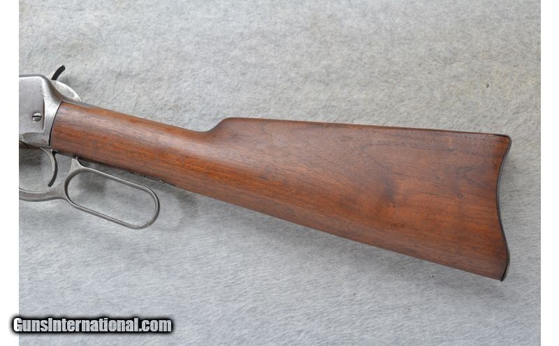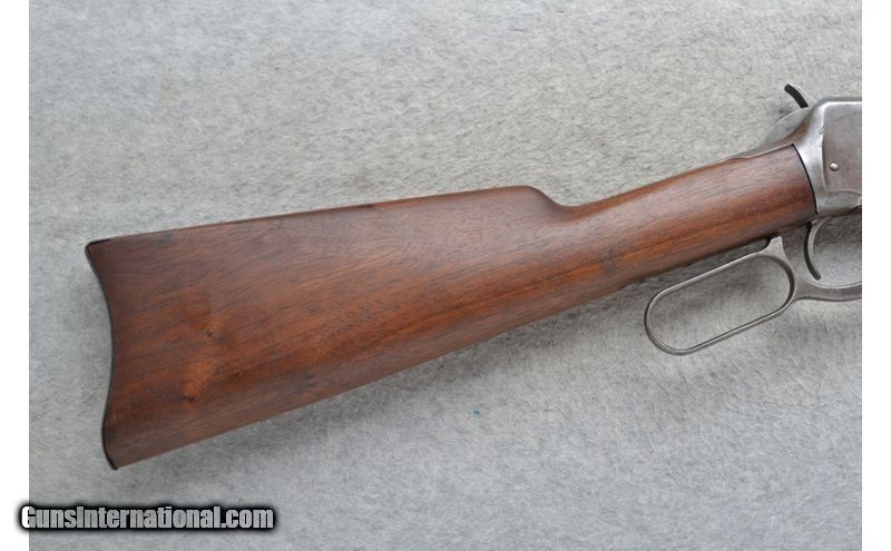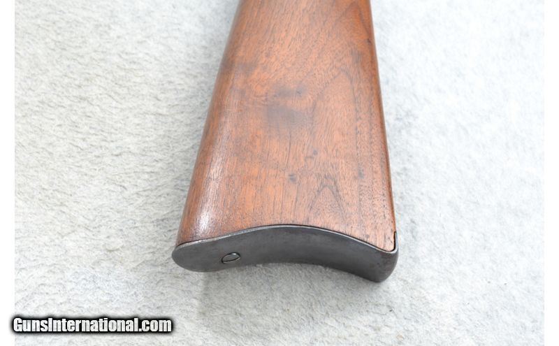 Description: This Winchester Model 1894 is a right hand lever action repeating rifle in .38-55 Win. Cal. It has a 20 inch barrel. A blade front sight and a two position folding adjustable ladder style middle sight. The butt stock is a smooth grip walnut straight grip. The forearm is a smooth grip walnut with a barrel band. Serial Number 97504 (1897). .38-55 Winchester SOLD Antique: Yes Chambers: Lever Action 6 round tube magazine. Metal Condition: Fair. No blue remaining. Patina. Handling / use marks. Wood Condition: Good. Multiple handling marks. Bore Condition: Very good. Barrels: 20 inch. Stock Dimensions: LOP 13 inches. Fore End: Smooth grip walnut with a barrel band. Butt Pad: Smooth curved steel. Weight: 5 lb. 14 oz. Sights: Blade front. Two position folding adjustable notch middle. Item Location: Richfield, WI |