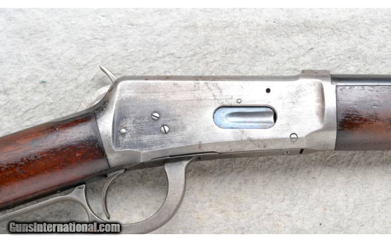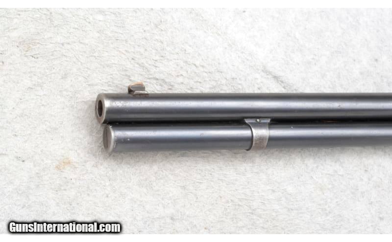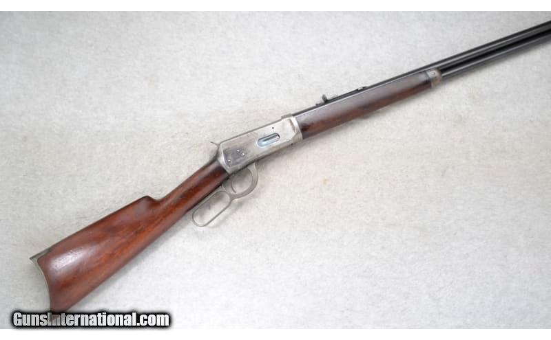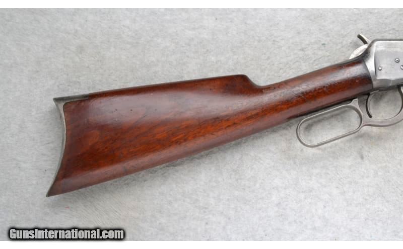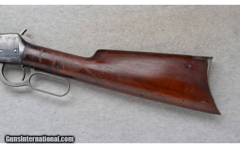Description: This Winchester Model 1894 is a right hand lever action repeating rifle in .38-55 Win. Cal. It has a 26 inch barrel. A blade front sight and an adjustable notch middle sight. The butt stock is a smooth grip walnut straight grip. The forearm is a smooth grip walnut with a steel cap. Serial Number 332736 (1905). .38-55 Winchester SOLD Curio/Relic: Yes Chambers: Tube Magazine. Metal Condition: "Shows age, use, wear, freckling and one nick in the barrel left side. Wood Condition: Has wear and handling/use marks. Bore Condition: Very Good. Barrels: 26 inch. Stock Dimensions: LOP 13 inches. Fore End: Smooth grip walnut with a steel cap. Butt Pad: Smooth steel crescent. Weight: 7 lb. 10 oz. Sights: Blade front. Adjustable notch middle. Item Location: Richfield, WI |