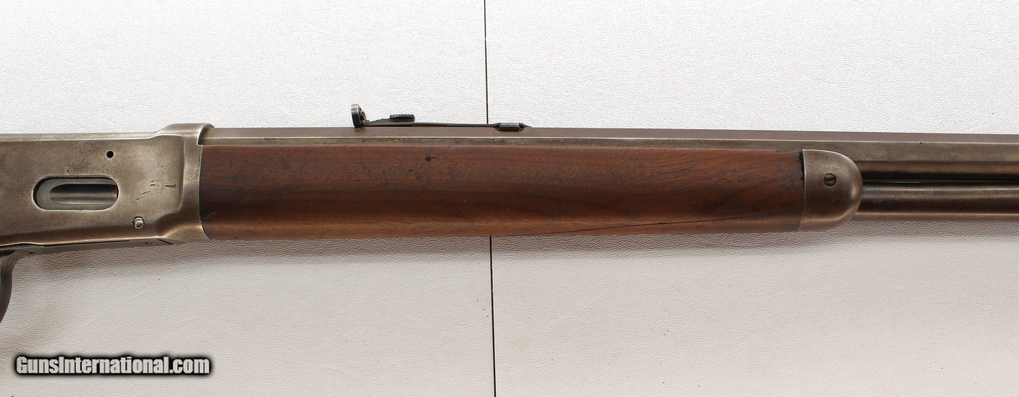 Description: Guns Listing ID: 1313345 SER#213183, 38-55, 26” octagon barrel and a mostly dark about good bore showing some areas of light pitting and oxidation, mostly about mid-bore, and otherwise fair rifling throughout. The barrel and magazine tube of this 1904-made rifle retain about 40% original blue showing handling marks and slight thinning and toning to a pleasant gray-brown patina. The action retains about 75% original blue showing some overall flaking to gray-brown and the left side with a few small scuff marks and pinprick pits. The nosecap and magazine hanger are in the white while the hammer and lever show faint case-hardened colors, and the loading gate retains some blue. There are a few old light tool marks along the lower tang and all markings remain intact and strong. The plain walnut buttstock with shotgun butt and the smooth forend remain in fair condition retaining some varnish showing scattered handling marks cracks and mild scuffs. Stock fit is otherwise excellent and the rifle is sighted with standard sporting rear sight and small front blade. A fair Model 1894 rifle for the budding collector without the big collector price tag. SOLD Manufacturer: WINCHESTER Model: 1894 Caliber Info: .38-55 WIN Condition: Used - Non-Certified Barrels: 26 BARREL Finish: BLUE |