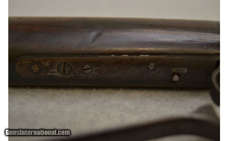 Description: SOLD Caliber Info: .38-55 Winchester Metal Condition: Fair; has pitting in various spots and has developed a patina. There does not seem to be any active rust though. Wood Condition: Poor to fair; has dents, dings, and scratches Bore Condition: Fair; has good rifling yet but is a little dark and has some pitting Barrels: 26" Barrel Triggers: Metal with patina Stock: Uncheckered wood Stock Dimensions: 13" LOP Fore End: Uncheckered wood Butt Pad: Metal plate Weight: 7 1/2lbs Sights: Blade front, leaf rear Item Location: Green Bay, WI |