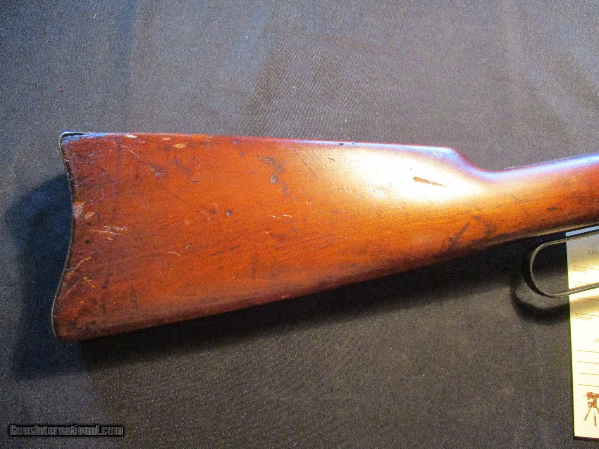 Description: Winchester Model 1894 made in 1920. Saddle Ring Carbine, 25-35, SN is 8955xx. Factory finish on both wood and metal, nice clean gun that is 100 years old! Email me if you would like these pics sent to you, they will come through bigger and better than on the listing page here. We do offer Lay-A-Way. Our standard terms are 25% down, 90 days. Initial deposit is not refundable. Email me with any questions. I am a store front dealer, and I will close s if the gun sells locally. Once it has aI will pull it from my shelves. Please check your local laws to confirm it is legal to own in your state! Buyer pays $25 shipping and insurance to your FFL in the lower 48. AK, HI or PR is extra. I will ship to California, NO PROBLEM! All my guns come with a non firing, 3 day unconditional return privilege, from the day UPS delivers to your dealer. Buyer pays shipping both ways if the gun comes back. I can add a new hard case by PLANO for secure shipping for $25 if the buyer wishes (highly recommended, cheap insurance, really helps keep the UPS monster from eating my guns!). No sales tax on guns ship out of Kansas, guns sold in Kansas are subject to Kansas sales tax. I am a licensed FFL, and will include a copy of my FFL with the gun for your dealers records. I will ship to a C&R if the gun is eligible. I will ship to California, but you need to confirm the gun is legal where you are, California or other. I am always looking for good clean, old original Winchesters to buy, consign, or trade, especially pre '64's model 70's and model 54's. WE ALSO TRADE FOR CLASSIC CARS AND TRUCKS! Email me with any questions, and good luck! SOLD |