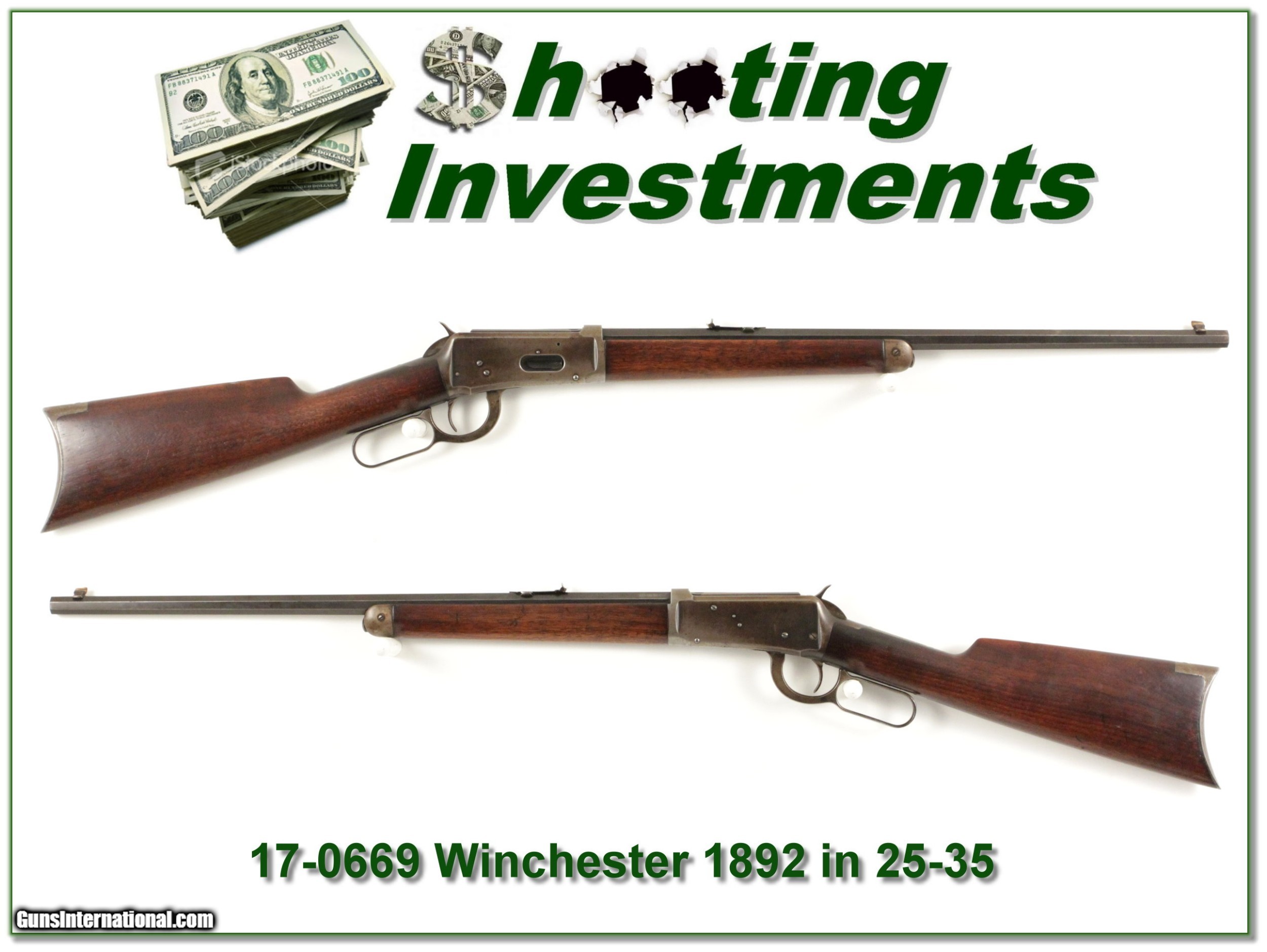 Description: Collectors, this is an all-original Winchester 1894 in 25-35. It was made in 1908 hand has a 22in octagonal barrel and steel crescent butt. The bore is strong. I am selling this one on consignment and as such lay-a-way can’t be used. It does of course have the standard 3-day inspection. Shipping and insurance is $49. Please email me with any questions or larger pictures. (I now consign quality firearms only 10%! Let me know if you have any you would like to sell!) 17-0669 Payment: Payment is by Money Order, Cashiers Check or Personal Check. I can now also accept MasterCard and Visa with a 3% convenience fee. PayPal can be used for some items but never firearms. Please let us know if you would like to pay via PayPal. Shipping: The shipping charge will be listed in each description. It is $39 for most long guns and $29 for most handguns. Some heavy guns or those insured for over $2000 will be higher. Shipments to Alaska and Hawaii are higher because air shipment is required. Most firearms are shipped on Tuesday and Thursday and usually in 5 days of receipt of payment. We package all shipments carefully and insure them. For long guns you can purchase a new Plano case for $19. They now cost us $22 when buying 100 at a time. Optics are shipped Priority Mail and most other non-firearm shipments are shipped First Class. Returns: Our return policy is simple. If for any reason you are not pleased with your purchase, you may return your item for a full refund of purchase price. Ammunition cannot be returned. It is important to us that you are happy. Guns cannot be fired or dissembled before returning them and they must be returned in the same condition as received. Notification of a return must occur with-in 3 days of receipt at your dealer. Shipping, convenience and dealer fees are not refundable and are the responsibility of the buyer. Lay-a-way: If needed, we offer a 60 day lay-a-way option on most firearms. It is 1/3 now, 1/3 in 30 days and 1/3 in 60 days. Lay-a-way firearm sales are final and if not completed the first payment cannot be returned. Consigning your firearms with Shooting Investments: We will help you get top dollar for your firearms. While most local guns shops charge 20% or more, our fee is only 12% with a minimum of $75. At your local gun shop it might take months to sell. Selling on-line provides instant access to thousands of interested buyers. You won’t find any other on-line dealer willing to sell your firearms for only 12% or listing every gun on 3 separate s. Selling through an House typically costs the seller 15% and the buyer an addition 15% (so 30%) and you have to wait several months to sell and longer to receive funds. If properly priced, we will sell your firearms in a few weeks. Send us an email or give us a call and we’ll explain how easy it is for you to get top dollar. Trading: Trading for use is really just buying your gun to re-sell. If you have a gun you want to trade, please email a picture and we will let you know what we can give or it. You will always get more if we sell it for you on consignment. Help for California Buyers: We are happy to ship to California. It is the buyer’s responsibility to make sure any item you buy is legal in your state. We are also happy to help with your purchase of a firearm from someone other than us. If you see a gun you would like to buy but the seller can’t or won’t ship to California they can ship to use and we’ll then ship it to your California dealer. The cost for this service is only $30 + shipping. Let us know if we can help! SOLD |