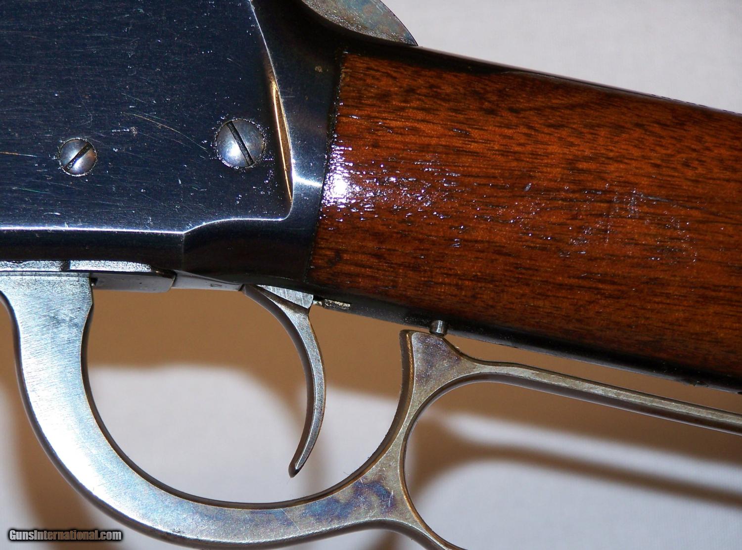 Description: Fantastic Winchester model 1894 38-55 round barrel full mag shotgun butt, has it all.Receiver and barrel retain 98% bright blue, loading gate has all of it's original fire blue. Lever and hammer have great case colors. The bore of this 38-55 is great, wood to metal fit is perfect. There are a few very small spots of frecking on top of bolt and front sight (see pics), that's it. These really good 1894's are getting harder and harder to find, Priced to sell at $4550.00 shipped.Any Questions or comments call Greg 607- 865 4370 Thank you Remember "Quality Matters SOLD |