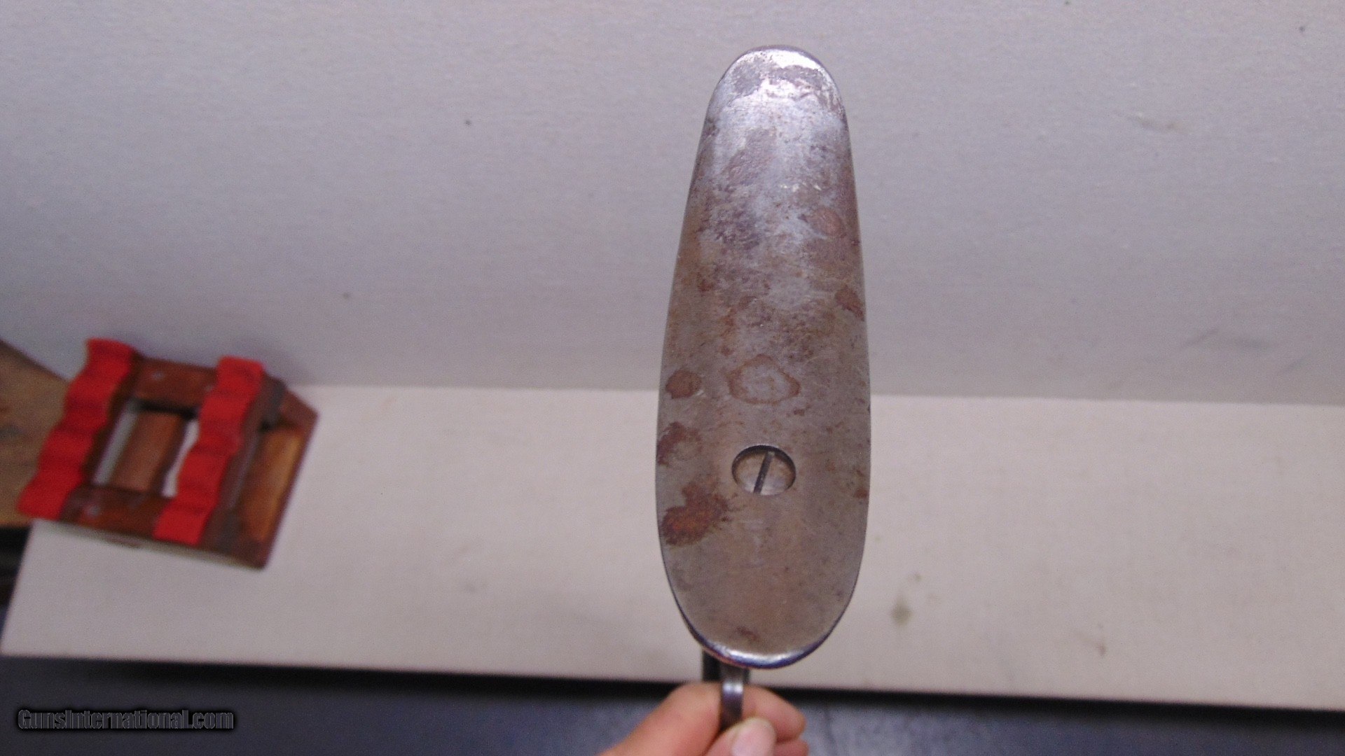 Description: Winchester 1894 Rifle ,30 WCF ,26" Octagon Barrel ,Full Magazine Tube ,Crescent Steel Butt Plate ,Three Leaf Rear Sight ,I Believe it is a 34C ,Good Condition ,Original Finish on Wood and Metal ,About 80% Blue on Barrel and Magazine Tube ,There is a Small Dent on Tube ,Receiver and Lever are mostly Brown Patina with some Surface Pitting ,Nickle Steel Barrel with Strong Rifling in Frosty Bore ,Solid Wood with many small Dings ,Good Function ,Circa 1906 Store Hours Thursday and Friday 10AM-8PM Saturday 9AM-Noon Contact Information Long Shot Gun Shop 299 Hooflander Road Dornsife PA 17823 570-758-2262 longshotgunshopgmail No CA Sales Shipping 35.00 SOLD Rifle Caliber: .30-30 Winchester Manufacturer: Winchester Model: 1894 Rifle Serial Number: 357335 Barrel Length: 26" Octagon Condition: Good Manufacture Date: 1906 |