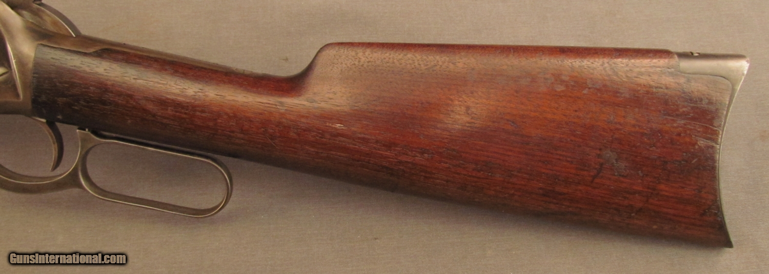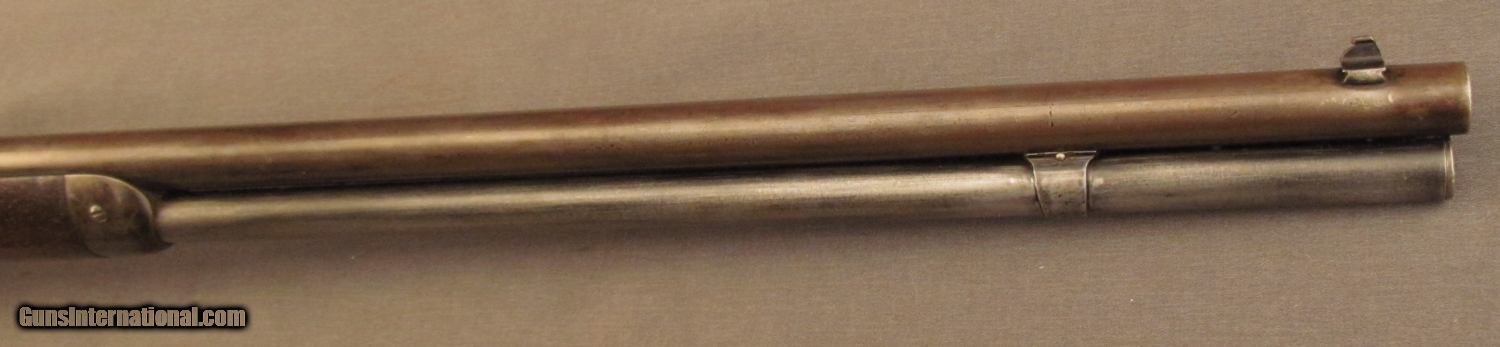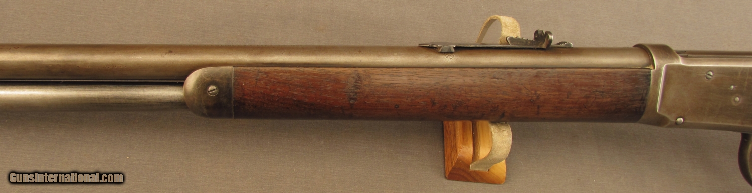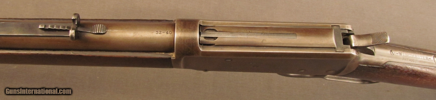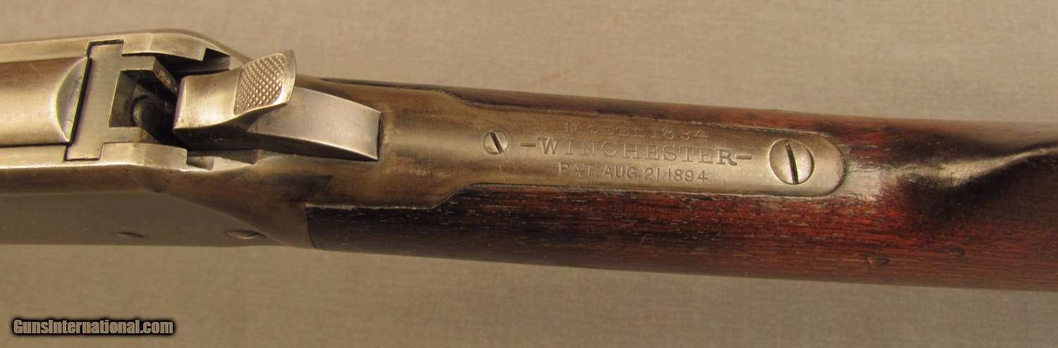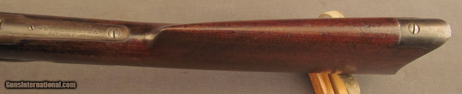 Description: S#208647, 32-40, 26 inch barrel, good bore with strong rifling and light erosion throughout. This 1901 manufactured rifle remains in very good condition with barrel and receiver showing a brown patina with traces of blue in protected areas. Magtube shows about 10% blue worn to bright. Wood is sound with very few marks for a gun of this age. A little oil was wiped on wood during period of use. Front sight is a Lyman bead, rear sight is a sporting Winchester with thumbpiece elevator. FFL or C+R SOLD Curio/Relic: Yes Manufacturer: Winchester Model: 1894 Serial Number: 208647 Caliber Info: .32-40 Gauge Info: .32-40 |