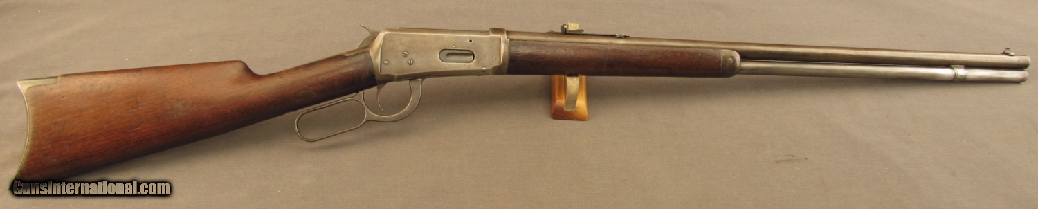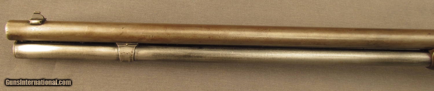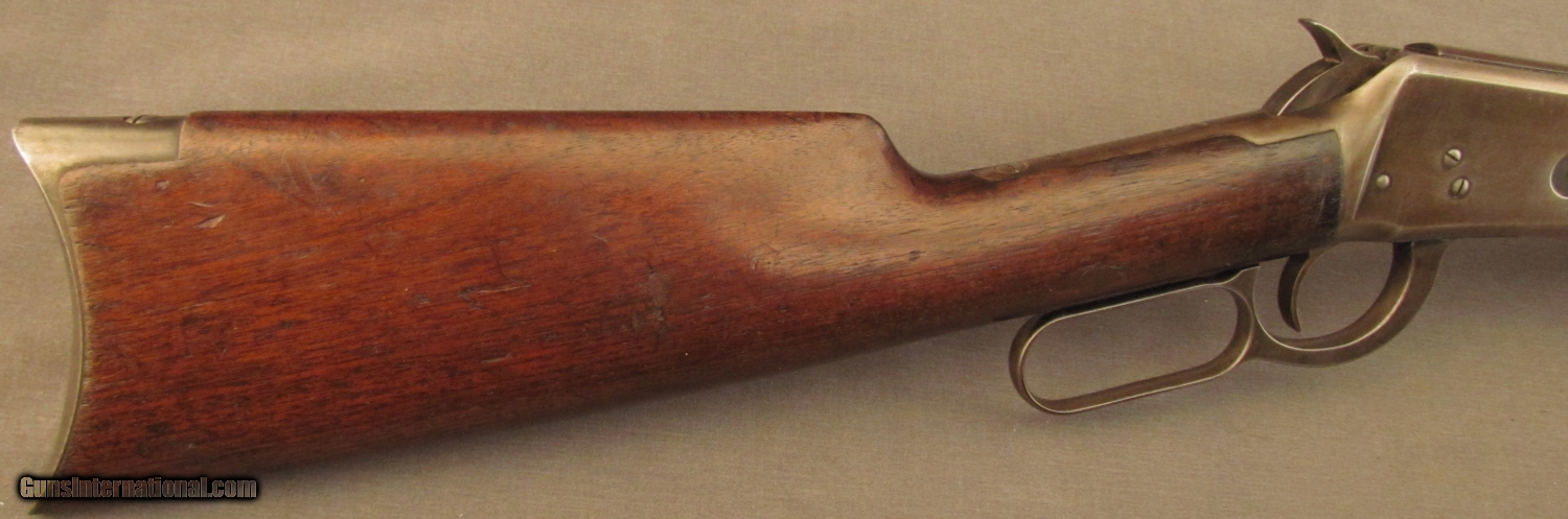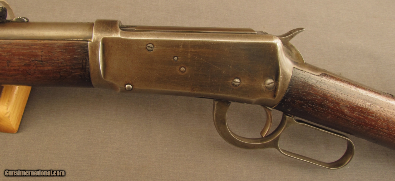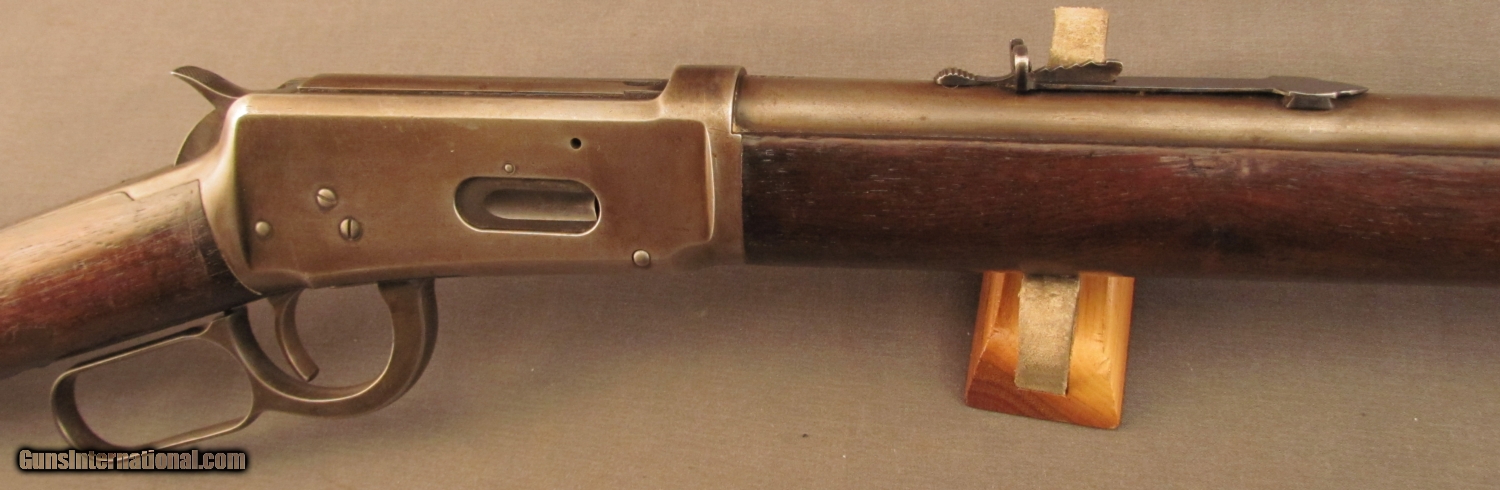 Description: S#208647, 32-40, 26 inch barrel, good bore with strong rifling and light erosion throughout. This 1901 manufactured rifle remains in very good condition with barrel and receiver showing a brown patina with traces of blue in protected areas. Magtube shows about 10% blue worn to bright. Wood is sound with very few marks for a gun of this age. A little oil was wiped on wood during period of use. Front sight is a Lyman bead, rear sight is a sporting Winchester with thumbpiece elevator. FFL or C+R SOLD Curio/Relic: Yes Manufacturer: Winchester Model: 1894 Serial Number: 208647 Caliber Info: .32-40 Gauge Info: .32-40 |