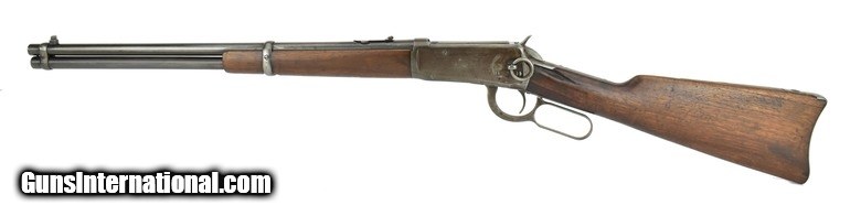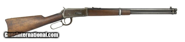 Description: Winchester 1894 .25-35 WCF caliber carbine. Made in 1921. .25-30 Caliber with a 20” barrel. Barrel has most of the original blue that is toning into a patina. Frame is mostly gray to light brown patina. Wood shows normal use and shrinkage. There is a piece of wood cut out from under the barrel band, we are assuming for attaching a sling. Strong bore and no visible pitting.