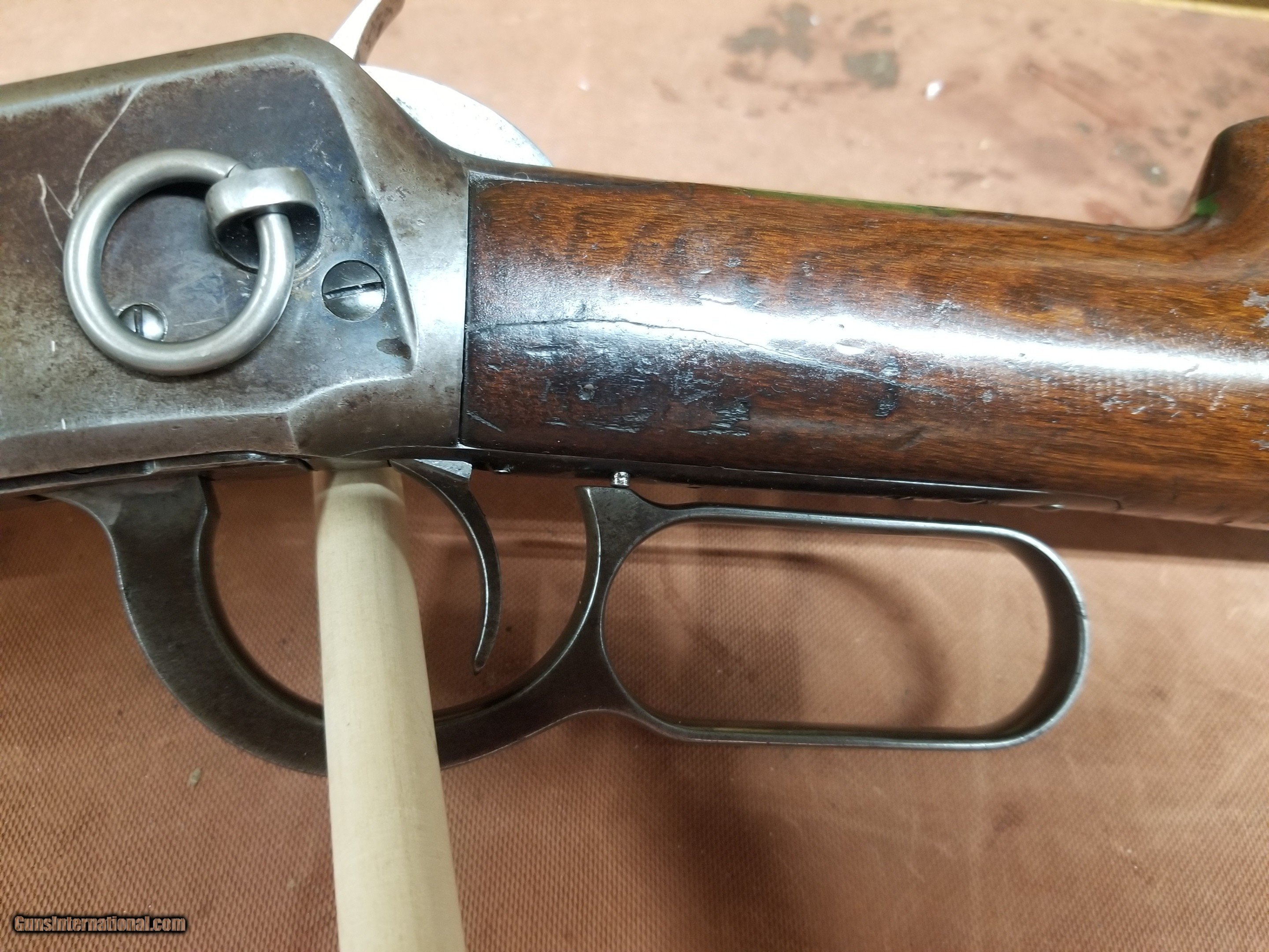 Description: Winchester 1894 Saddle Ring Carbine, 32 special cal., shotgun butt, express rear sight, ser. 3747xx made in 1905 repaired crack in stock, crack in forarm, see pics, $30.00 shipping, FFL 0r C&R required SOLD Curio/Relic: Yes |