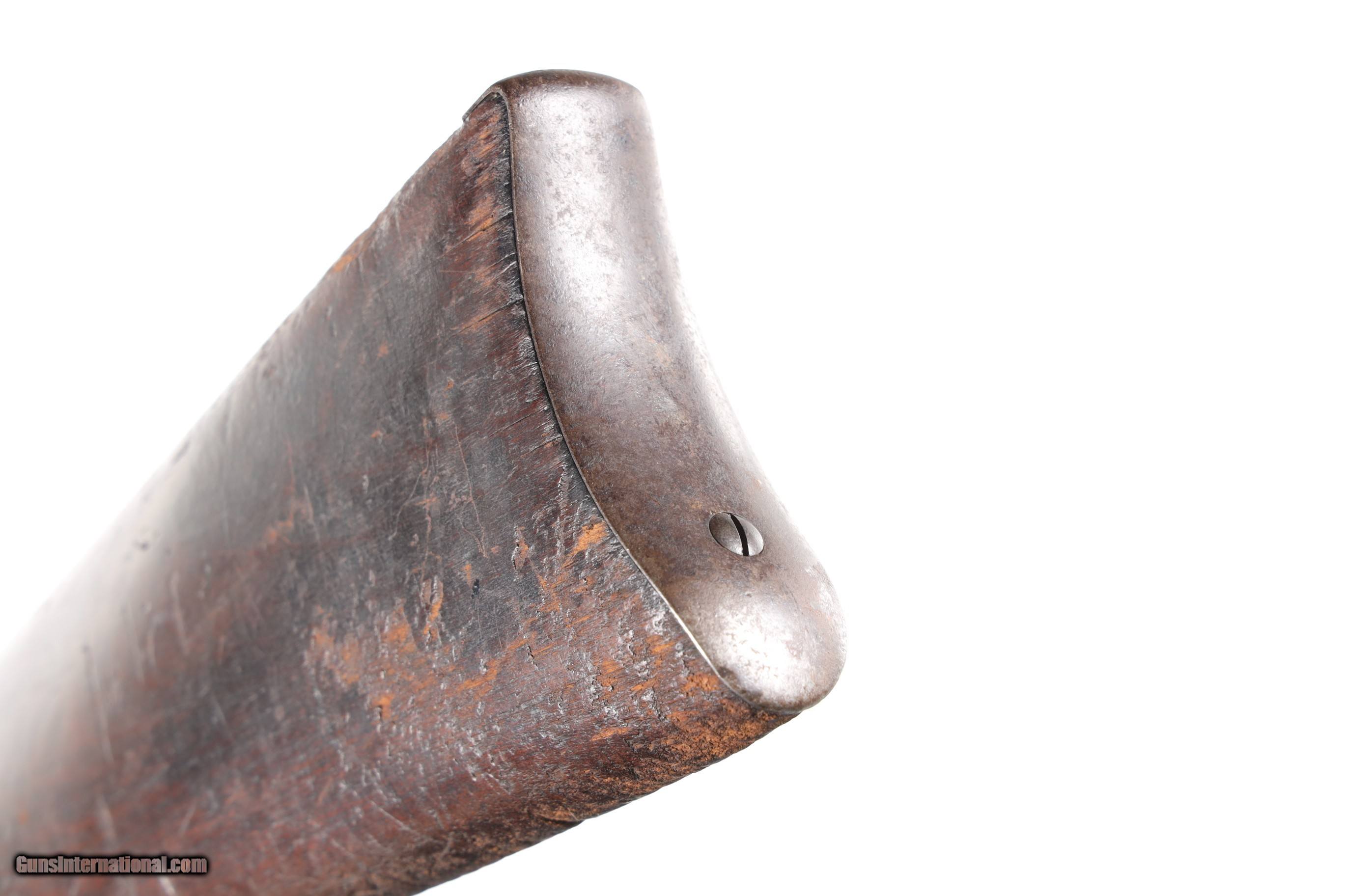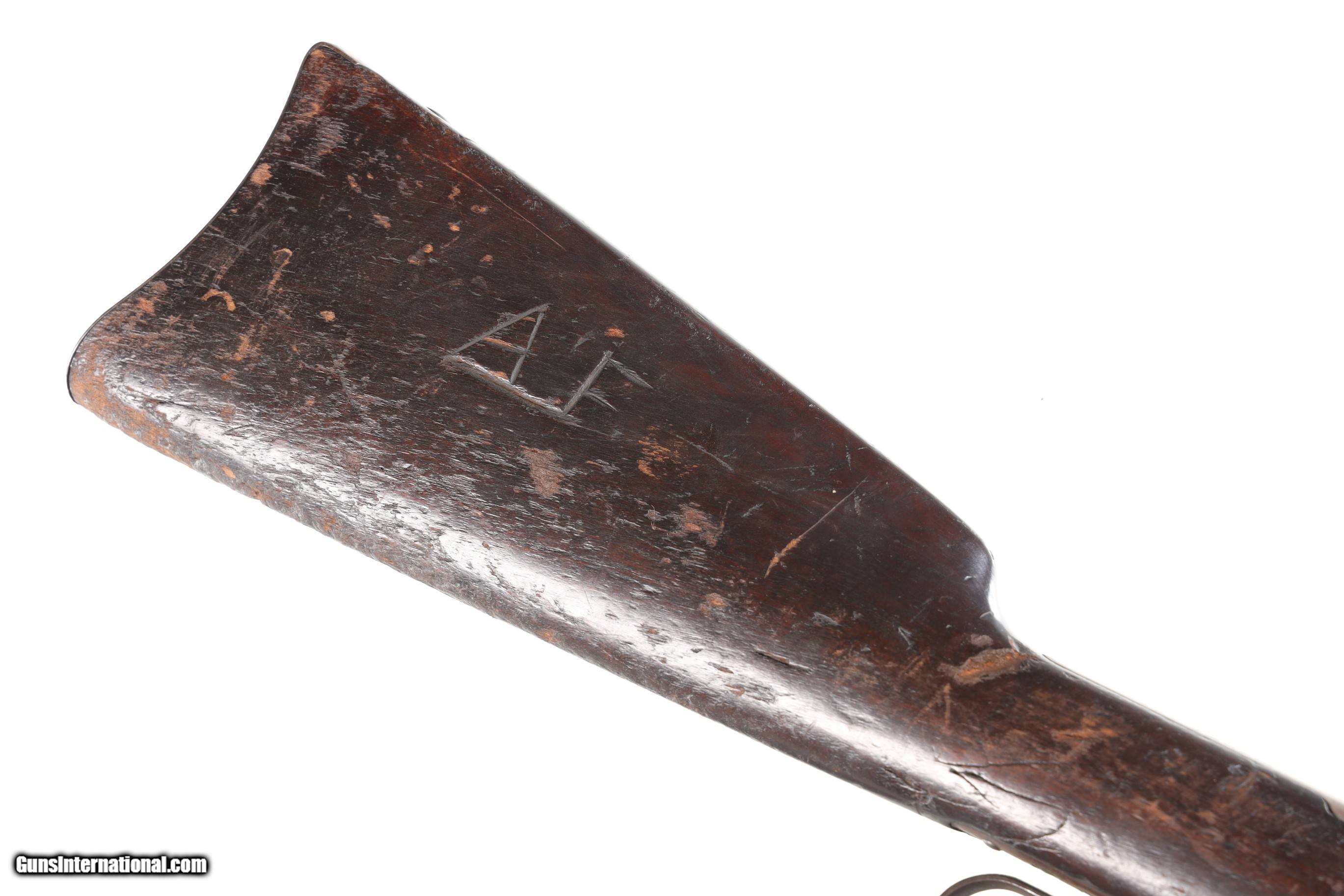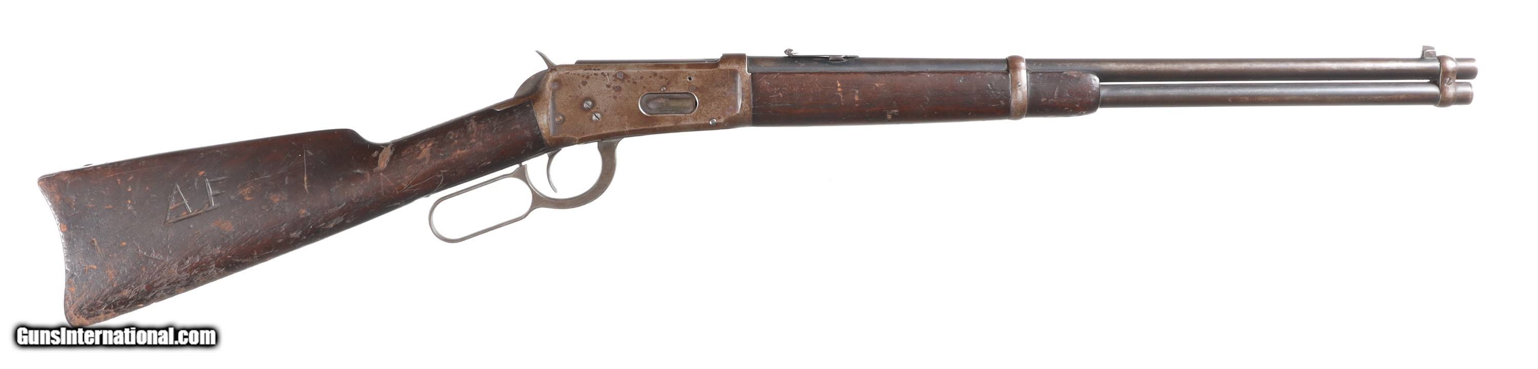 Description: Serial Number 447048 Barrel 20" Cal, .30 WCF (30-30) Mfg, 1909. Classic Southwest used Winchester 94 Saddle Ring Carbine with post mounted blade front sight and 2 leaf express rear sight. Oil finished walnut stocks with steel carbine butt plate. Condition. Carbine remains in as found condition with elements of faded blue finish mixed with deep chocolate patina. Bore is very good with sharp rifling. Action operates properly and locks solidly. Stocks have period of use bruises and and impressions with the initial "AF" carved into the butt stock during its period of use. C&R • Free Shipping, No Credit Card Fees. • Lay-a-way available for this firearm. • 1/3 Down, a 1/3 in 30 Days, 1/3 in 60 Days. SOLD Curio/Relic: Yes Manufacturer: Winchester Model: 1894 Serial Number: 447048 Barrel Length: 20 |
