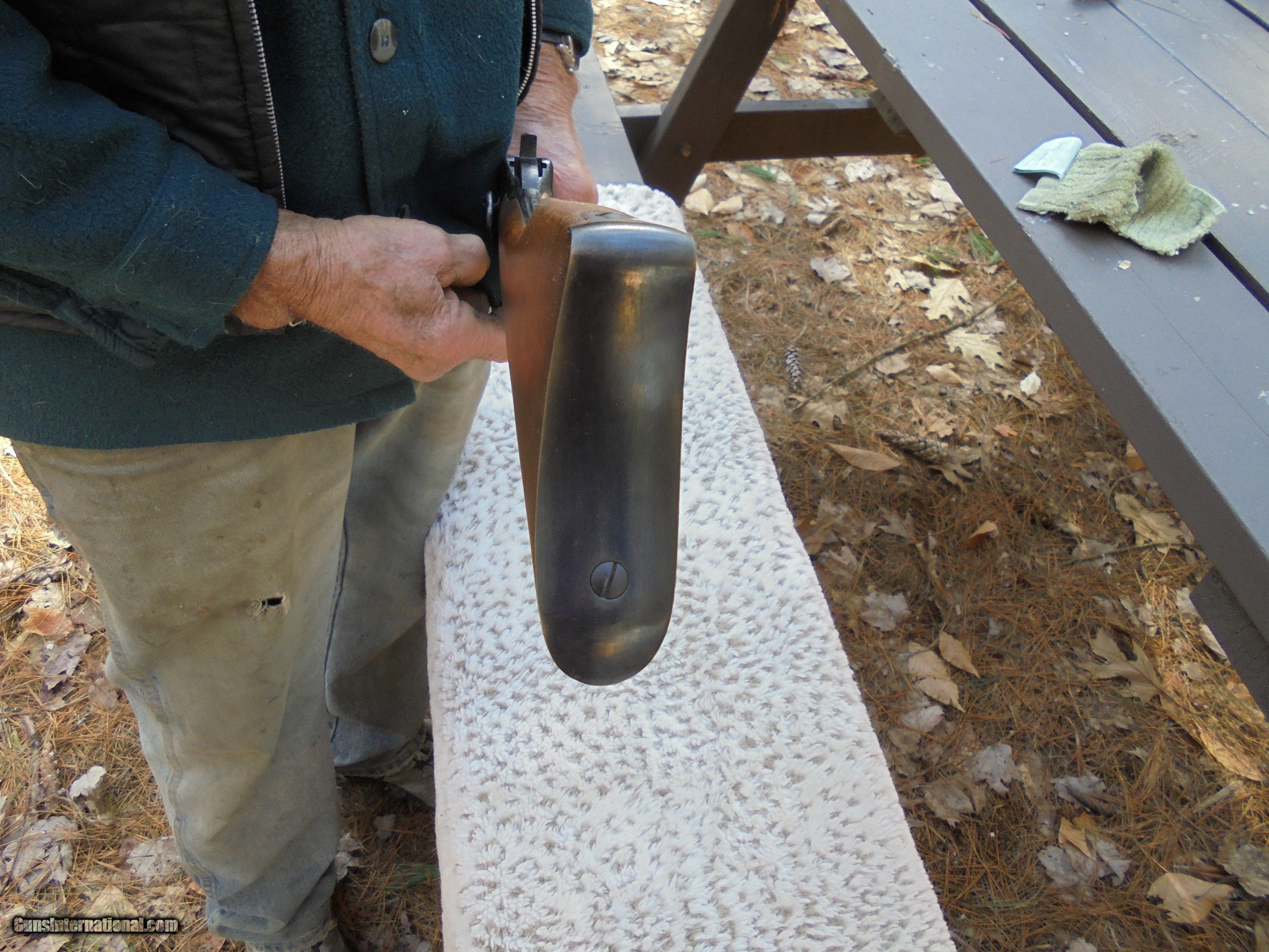 Description: NEW PRICE (3/13/24) Winchester 1894 saddle ring carbine. 30WCF - 30-30 Caliber - 20" barrel - original stock and forearm are gumwood (gumwood was standard on carbines manufacturerd before the mid-1920's) - good rifling - barrel and action show minor pitting - most bluing remains - may have been reblued at some point - butt plate is in excellent condition - serial number 762893 - manufactured 1915 - action tight, rifle functions perfectly. $1200 or best offer plus $45 shipping. Must ship to FFL. Lower 48 states only. Certified check or money order accepted. Any questions, please email or phone Bob.(315-348-8270). SOLD |