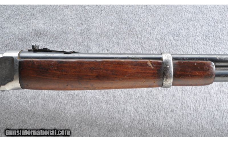 Description: Link pin stop screw has been replaced SOLD Curio/Relic: Yes Manufacturer: 1918 Caliber Info: .30 W.C.F. (Winchester Center Fire) .30-30 Win Metal Condition: The receiver is almost totally worn to the white with scattered pitting some screw heads show minor marring. The barrel and mag tube show a good amount of original finish with some pitted areas Wood Condition: The stock and fore end are sound with no visible cracks but normal field marks Bore Condition: Good strong rifling visually bright Barrels: 20 Stock: Uncheckered straight grip Stock Dimensions: 13" LOP Fore End: Uncheckered with barrel band Butt Pad: Metal crescent Weight: 6 lbs 6 oz Sights: Pinned Blade front, Marbles sporting leaf rear Item Location: Grand Junction, CO |