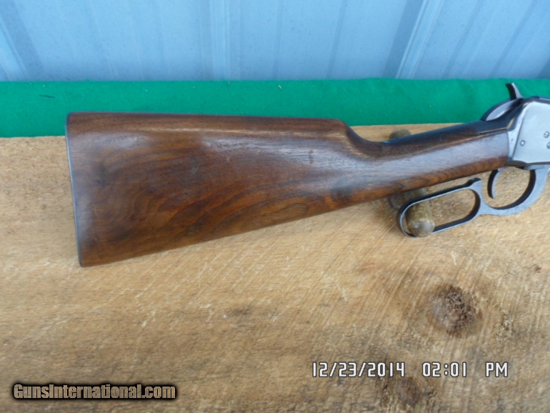 Description: WINCHESTER 1950 MODEL 94,30-30 WIN. LEVER CARBINE,90% OVERALL ORIGINAL CONDITION.20" CARBINE BARREL WITH FACTORY OPEN SIGHTS ,EXCELLENT BORE AND ORIGINAL BARREL BLUE WITH A COUPLE RUB MARKS. LEVER HAS SOME LIGHT SURFACE FRECKLING.RECEIVER IS IN GREAT SHAPE.FACTORY WALNUT STOCKS WITH NO CRACKS OR CHIPS WITH ORIGINAL STEEL CHECKERED BUTT PLATE.WOOD HAS SOME LIGHT HANDLING MARKS ON ORIGINAL FINISH.TIGHT SOLID GUN ,FULLY FUNCTIONAL. S/N 18127XX FROM 1950. 559.00 PLUS 40.00 SHIPPING.CALL DANNY AT 828-698-8804 IF NEEDED.GOD BLESS YOUR CHRISTMAS! SOLD |