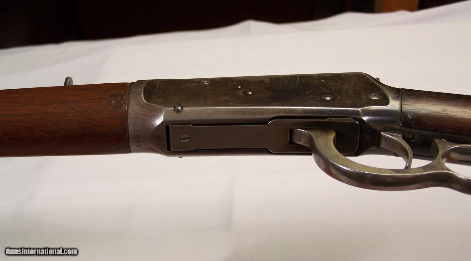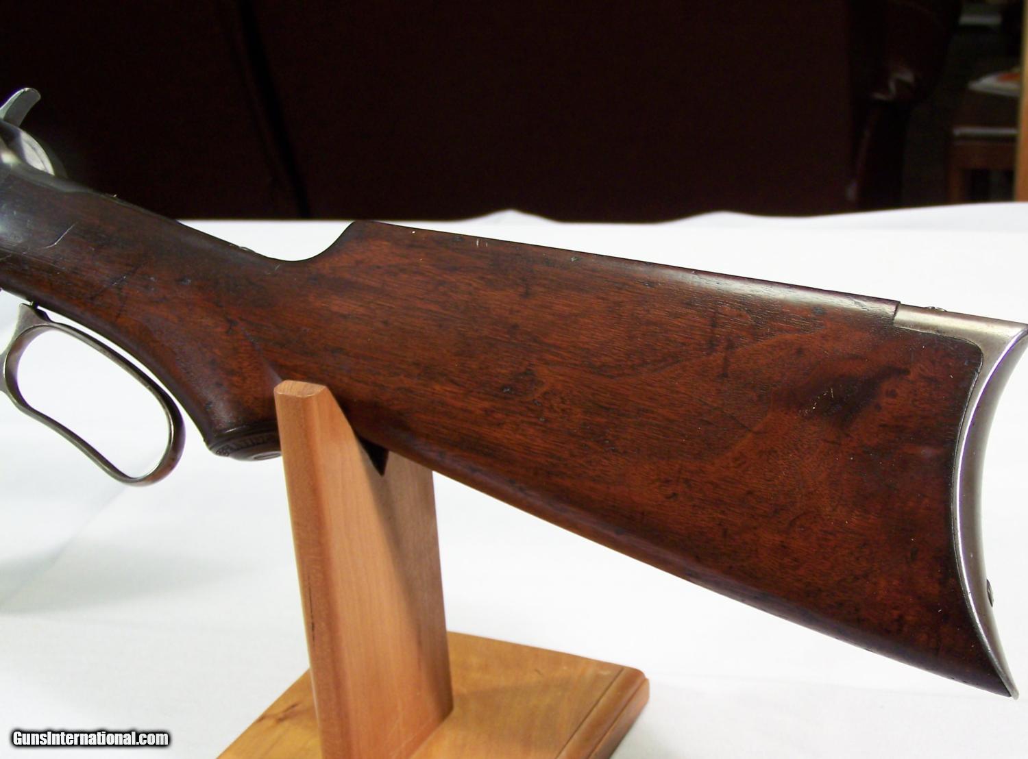 Description: Winchester 20 " short rifle .30wcf full octagon full mag plain wood pistol grip short forend. Out of the letterable range, but 100% correct. There is a small repair to the forend ( see pics ) it is solid, but visible.Bore is an 8.5, wood to metal fit is excellent. Receiver retains 75% blue barrel and tube 90%. Correct sights, and markings under forend. Serial # 644xxx, short rifles are not that common , this is a semi deluxe 20" gun. Any questions or comments call 607-865-4370. Remember "Quality Matters SOLD Curio/Relic: Yes |