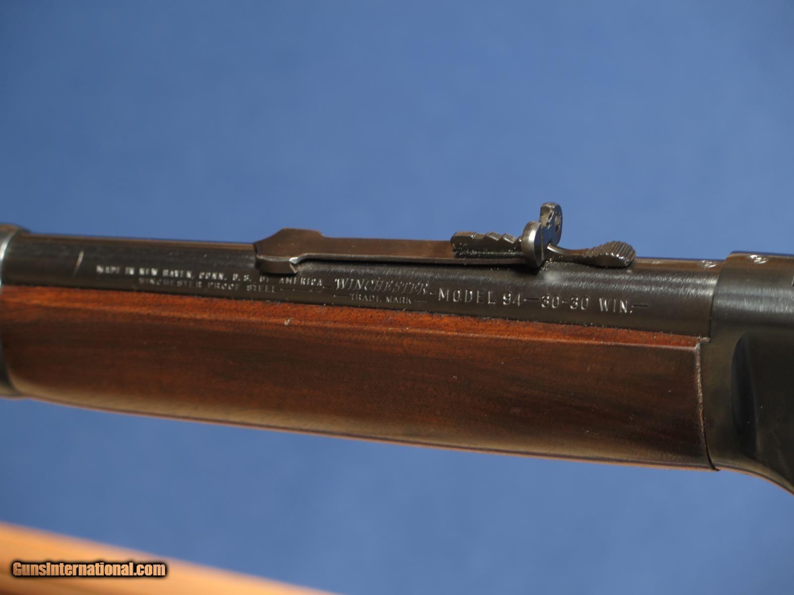 Description: Winchester 94 30-30 carbine. 1952 mfg. 20 inch barrel. Metal butt plate. Original finish. 98% blue. Wood shows slight use. 'We The People' medallion in stock. SOLD Curio/Relic: Yes Rifle Caliber: .30-30 Winchester |