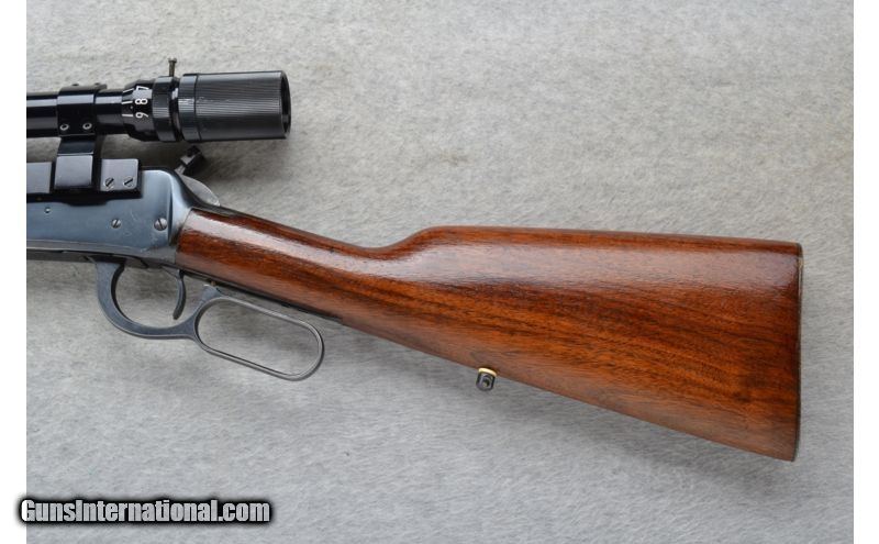 Description: This Winchester Model 94 is a right hand lever action repeating rifle in .30-30 Win. Cal. It has a 20 inch barrel with a blade front and adjustable notch middle sight. It is outfitted with a Universal 3x-9x32 Scope. The stock is a smooth walnut straight grip and the forearm has a barrel band. Manufactured in 1955. SOLD Curio/Relic: Yes Manufacturer: 1955 Caliber Info: .30-30 Win. Chambers: Lever Action 7+1 tube magazine. Metal Condition: Good. Light blue wear and minor freckling on the receiver. Wood Condition: Good with minor handling marks. Has been refinished. Bore Condition: Excellent. Barrels: 20 inch blued. Triggers: Hammer exension. Stock: Smooth walnut straight grip stock. Stock Dimensions: LOP 13 inches. Fore End: Smooth grip walnut with a barrel band. Butt Pad: Checkered steel plate. Weight: 7 lbs. 10 oz. Sights: Raised blade front. Adjustable notch middle. Universal 3x-9x32 Scope. Extras: Comes with a Universal Scope and sling swivel studs. Item Location: Richfield, WI |