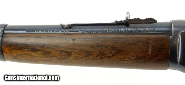 Winchester 94 .30-30 Win caliber carbine. 20” barrel carbine manufactured 1950. Excellent bore and metal retains 90% original bluing. Wood is good with expected handling marks and wear.