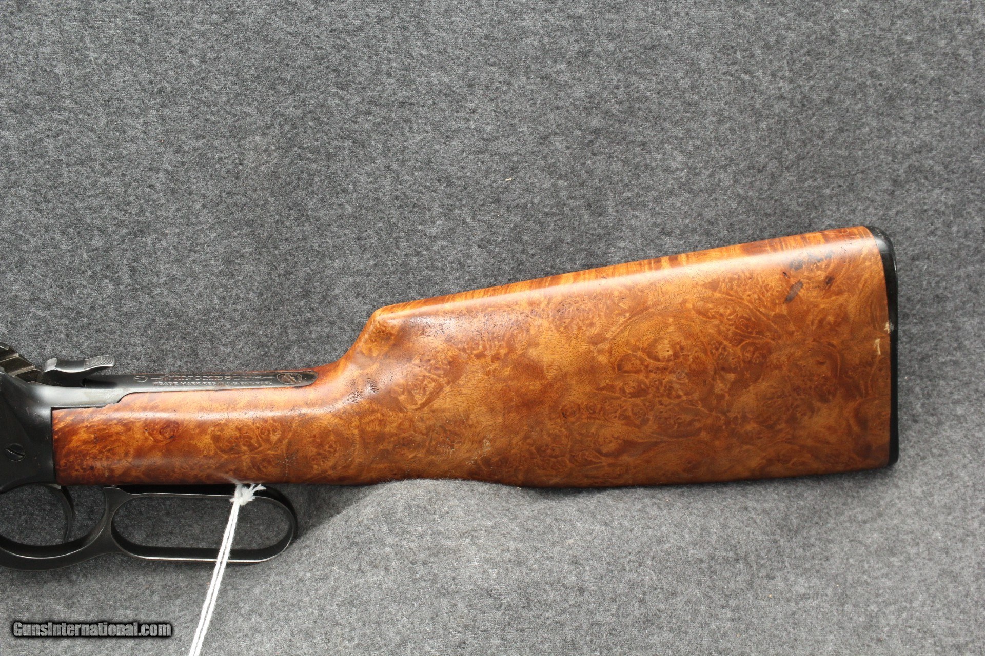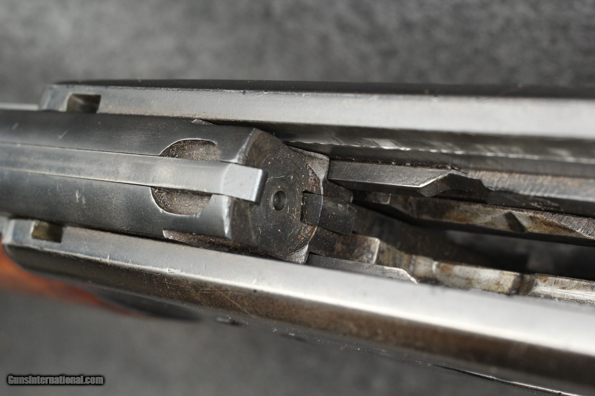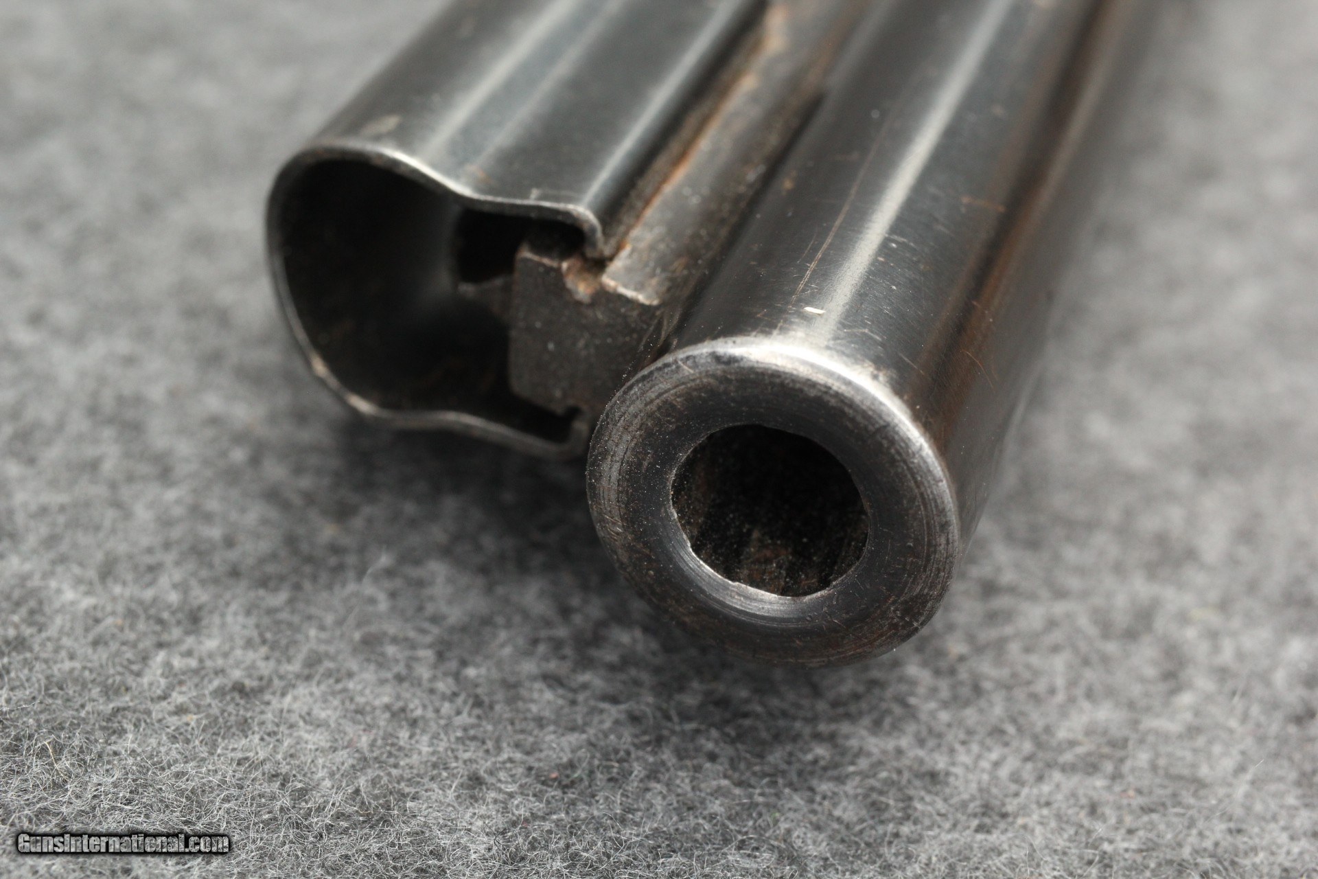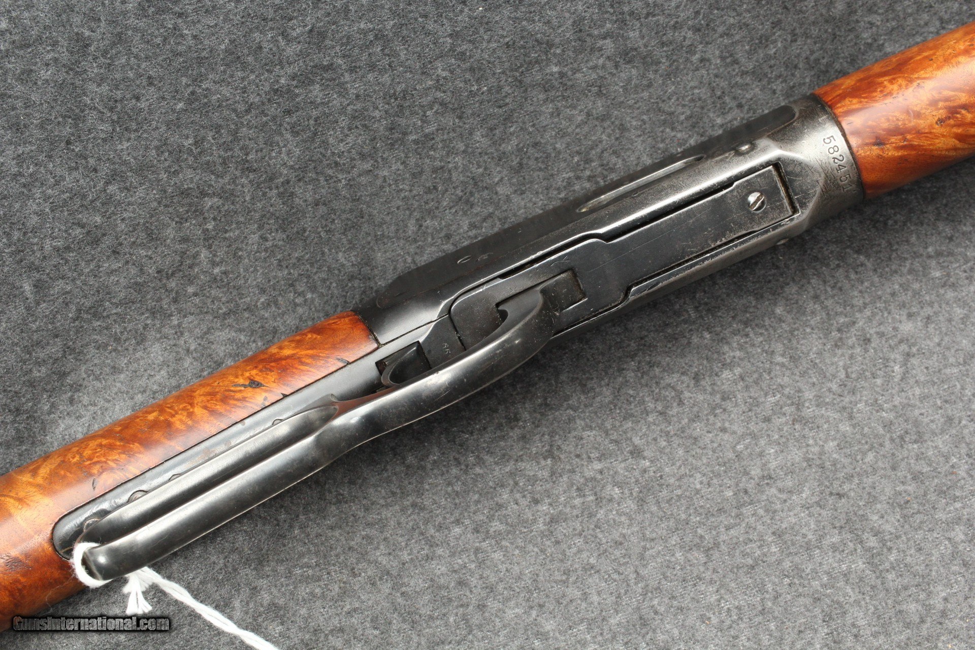 Description: Serial number 582XXX. Mfg 1911. 20" barrel from a Winchester 64. Non-original wood. Wood is burl maple, non checkered. Metal has been reblued. Action shows light marring under old reblue, retains 70% reblue. Right side of action shows forging striations. Magazine tube has half round cut 2" back from dovetail. Barrel has half round cut 2" back from muzzle. King rear sight. Original correct front sight ramp and hood. Bore is excellent. Will ship to C&R. Please add $55.00 for shipping and insurance. SOLD Curio/Relic: Yes Rifle Caliber: .30-30 Winchester |