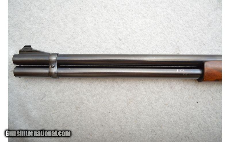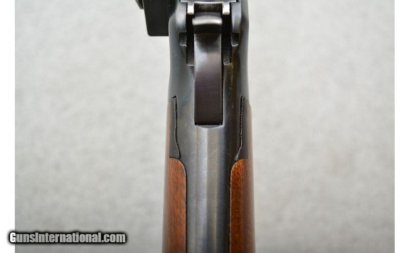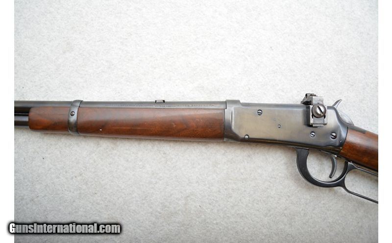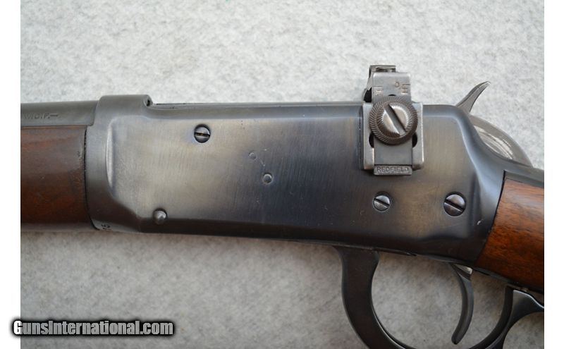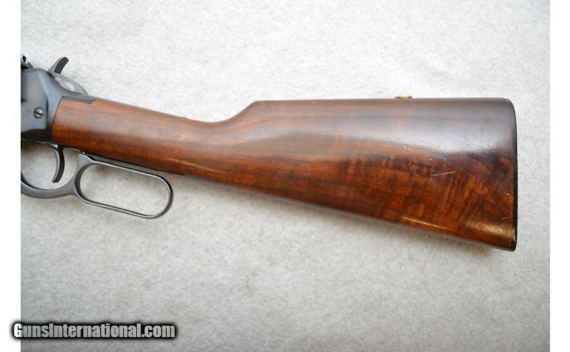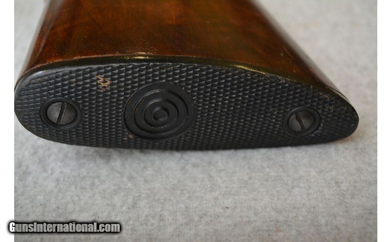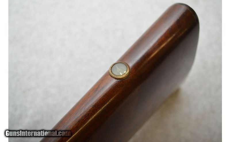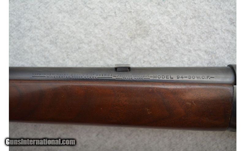 Description: From a collectors' standpoint this rifle is in rough shape. From a shooters' perspective this is example is in good shape. There is strong evidence that this rifle has been reblued at least once. The top of the stamps on the barrel have lost some definition and the Winchester proofs on the barrel and receiver are very faded. The edges on the receiver are rounded and there is evidence of the use of a belt sander in the background of the bluing as well as a shot or two of blued rust pitting. The stock has been repaired and refinished at some point in its life. Someone also decided that adding a compass in the comb of the stock was a good idea at some point. Mechanical condition is very good with a solid lockup and no rattle. Sources indicate 1945 as the year of manufacture. .30 WCF SOLD Chambers: Lever action fed from a tubular magazine. Metal Condition: Fair to good. Wood Condition: Fair to good. Bore Condition: Excellent. Barrels: 20" Blued. Triggers: Blued metal with smooth face. Stock Dimensions: Smooth hardwood with 13¼" LOP. Butt Pad: Black plastic plate with "bullseye". Weight: 6lbs 4oz Sights: Fixed front blade and Redfield aperture rear. Chokes: N/A Item Location: Green Bay |