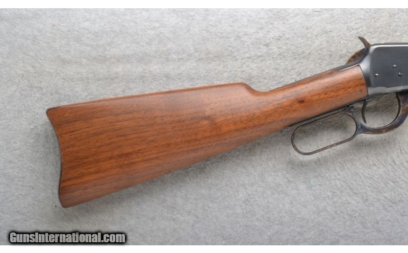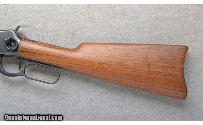 Description: This Winchester Model 94 is a right hand lever action repeating rifle in .30 WCF Cal. It has a 20 inch barrel. A blade front sight and an adjustable notch middle sight. The butt stock is a smooth grip walnut straight grip. The forearm is a smooth grip walnut with a barrel band. It has a left side saddle ring. The hammer, lever and butt plate are case colored. .30 WCF SOLD Chambers: Tube Magazine. Metal Condition: Very Good. Wood Condition: Excellent. Bore Condition: Excellent. Barrels: 20 inch. Stock Dimensions: LOP 13 inches. Fore End: Smooth grip walnut with a barrel band. Butt Pad: Case colored curved steel plate. Weight: 6 lb. 4 oz. Sights: Blade front. Adjustable notch rear. Item Location: Richfield, WI |