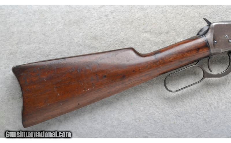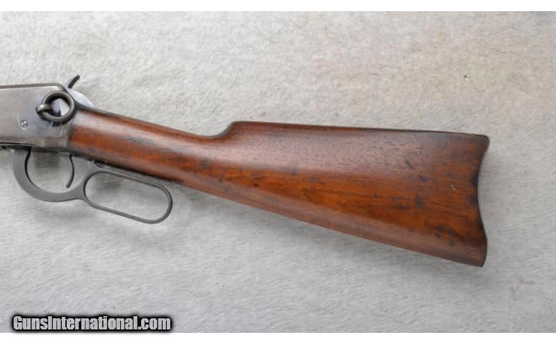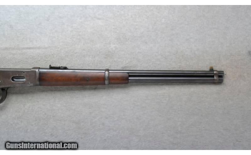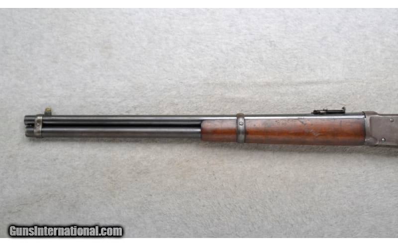 Description: This Winchester Model 94 is a right hand lever action repeating rifle in .30 WCF Cal. It has a 20 inch barrel. A blade front sight and a folding adjustable ladder middle sight. The butt stock is a smooth grip walnut straight grip. The forearm is a smooth grip walnut with a barrel band. It has a left side saddle ring. Manufactured 1921. .30 WCF SOLD Curio/Relic: Yes Chambers: Tube Magazine. Metal Condition: "Shows age, use and wear. Patina, freckling and light rust spots. Wood Condition: Has many light handling marks. Fine crack right side butt behind receiver. Bore Condition: Good. Barrels: 20 inch. Stock Dimensions: LOP 13 inches. Fore End: Smooth grip walnut with a barrel band. Butt Pad: Smooth steel crescent. Weight: 6 lb. 8 oz. Sights: Blade front. Folding adjustable ladder style middle. Item Location: Richfield, WI |