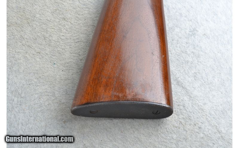 Description: This Winchester Model 94 is a right hand lever action repeating rifle in .32 Win. Spl. Cal. It has a 20 inch barrel. A raised blade front sight and an adjustable notch middle sight. The butt stock is a smooth grip walnut straight grip. The forearm is a smooth grip walnut with a barrel band. Serial Number 1690027 (1950). .32 Winchester Special SOLD Chambers: 7 round tube magazine. Metal Condition: Fair. Barrel and receiver have some minor freckling and minor handling marks. Wood Condition: Fair. Has handling marks and light wear. Bore Condition: Very Good. Barrels: 20 inch. Stock Dimensions: LOP 13 inches. Fore End: Smooth grip walnut with a barrel band. Butt Pad: Checkered steel plate. Weight: 6 lb. 8 oz. Sights: Raised blade front. Adjustable notch middle. Item Location: Richfield, WI |