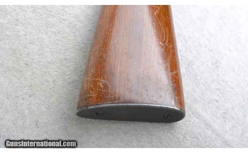 Description: This Winchester Model 94 is a right hand lever action repeating rifle in .32 Win. Spl. Cal. It has a 20 inch barrel. A raised blade front sight and an adjustable notch middle sight. The butt stock is a smooth grip walnut straight grip. The forearm is a smooth grip walnut with a barrel band. Serial Number 1867440 (1952). .32 Winchester Special SOLD Chambers: Tube Magazine. Metal Condition: Good. Some very minor light freckling and minor handling marks. Wood Condition: Fair. Many light handling marks and some surface finish wear. Bore Condition: Very Good. Barrels: 20 inch. Stock Dimensions: LOP 13 inch. Fore End: Smooth grip walnut with a barrel band. Butt Pad: Checkered steel plate. Weight: 6 lb. 10 oz. Sights: Raised blade front. Adjustable notch middle. Item Location: Richfield, WI |
