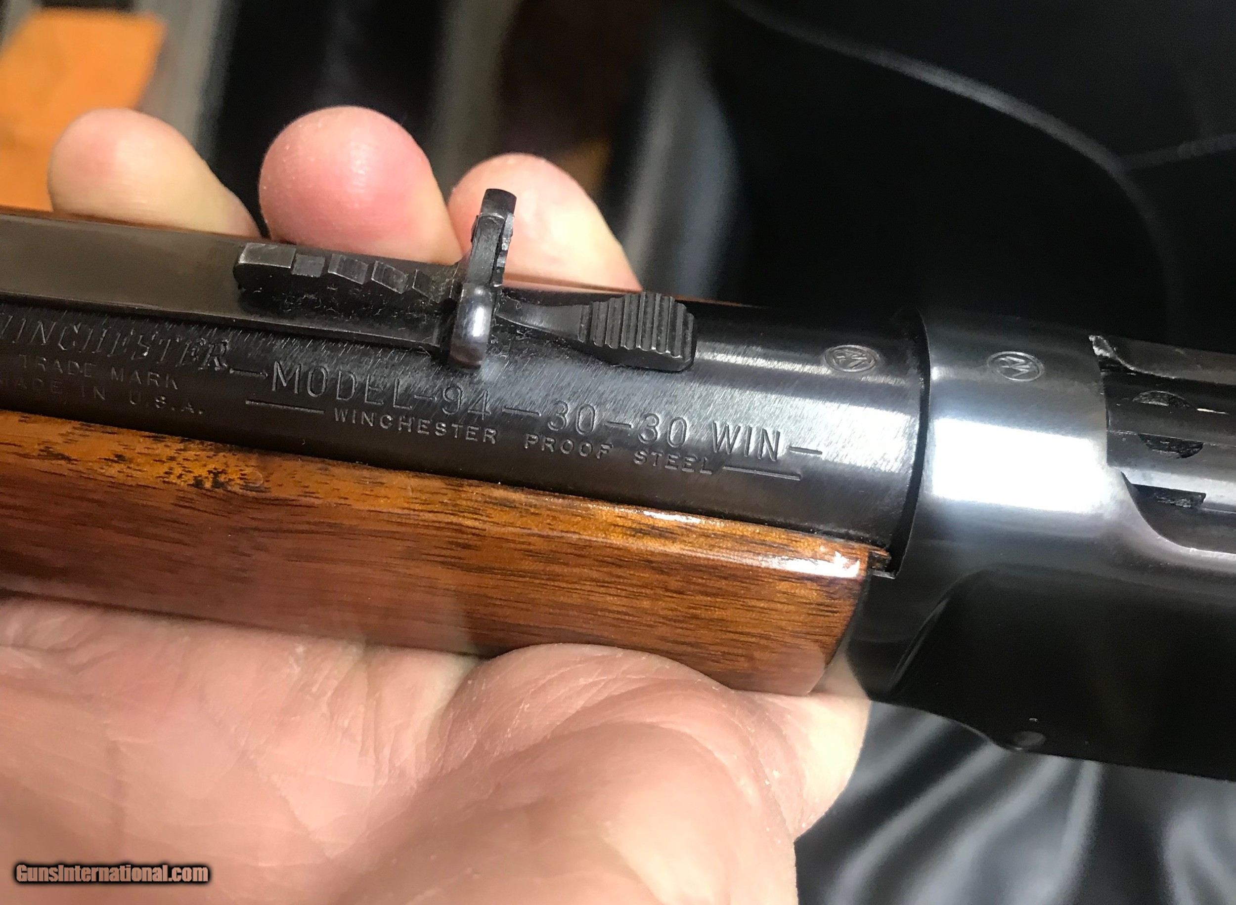 Description: SOLD PENDING PAYMENT This rifle is near perfect. Blue, nice wood, adjustable sights, 30-30 caliber, hood on front sight, replacement butt plate. To be 68 years old, this gun is absolutely incredible!! Please email with questions. Shipping included. Cards add 3% SOLD Manufacturer: Winchester Model: 94 Barrel Length: 20 inch Condition: Used Metal Condition: Excellent Wood Condition: Excellent Bore Condition: Excellent Action: Lever Finish: Blue Sights: Adjustable Manufacture Date: 1954 Item Location: 37075 |