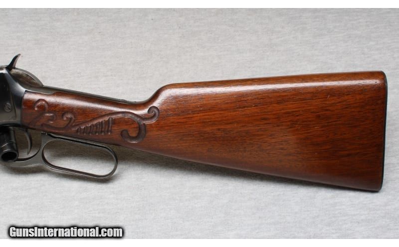 Description: Very good condition, light finish wear, small nicks and scratches, small areas of light corrosion on receiver. Classic Winchester lever rifle, 20" barrel, blued finish, factory iron sights, smooth hardwood stock & forend with custom scriolling, and checkered metal butt plate. Manufactured in 1947. .25-35 WCF SOLD Curio/Relic: Yes Chambers: Lever action Metal Condition: Very good Wood Condition: Very good Bore Condition: Bright Barrels: 20 Triggers: Factory Stock Dimensions: 13" LOP Butt Pad: Metal butt plate Sights: Iron sights Item Location: La Vista, NE |