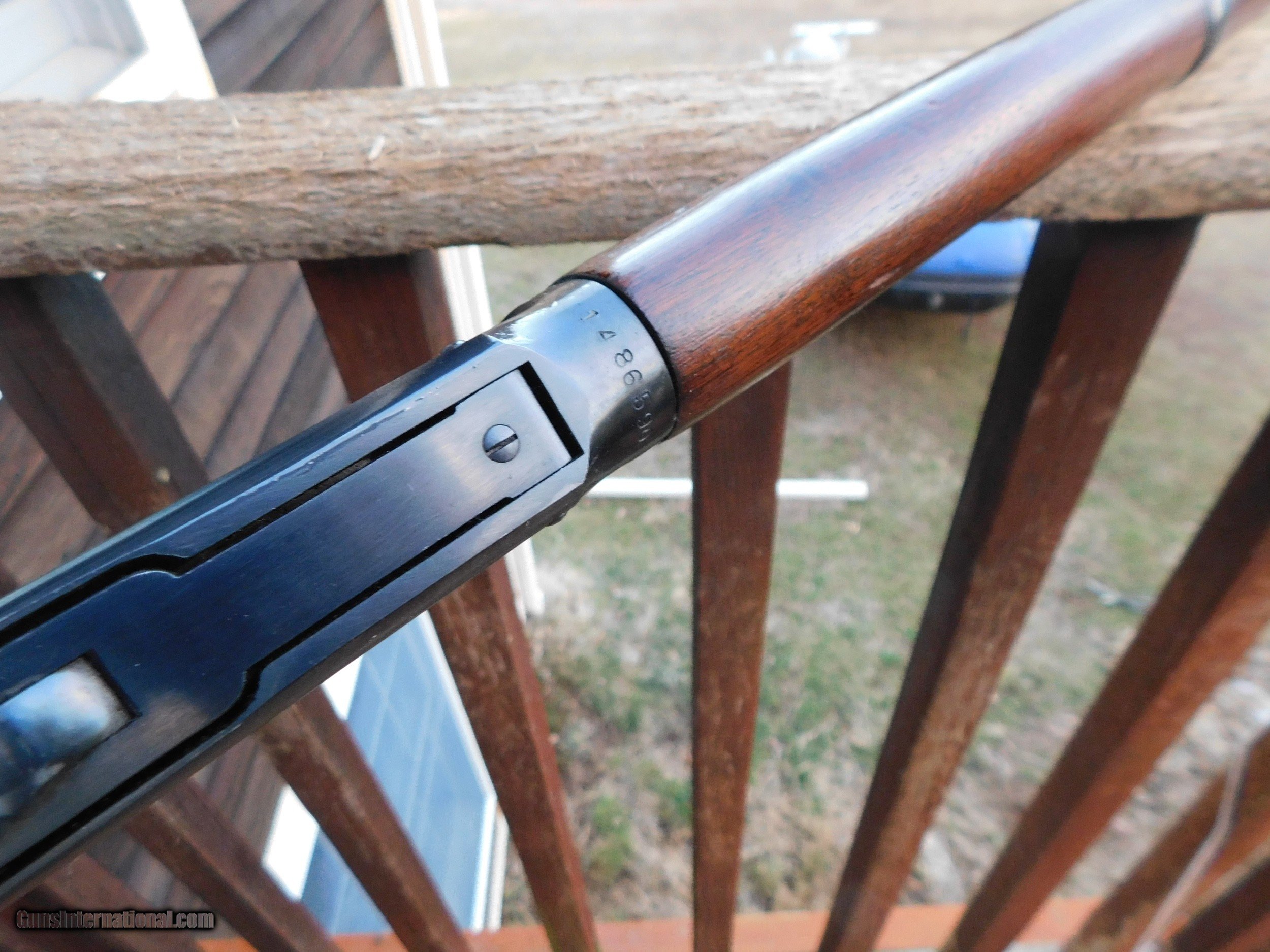 Description: SALE PENDING PAT P. CO. 4/9/23 For not much $ you can own a piece of history.They do not get much better than this for a nearly 80 year old gun. Other than a light scratch or two on the left side of the reciver the metal is very nearly perfect. There are a few compression and handling marks on the nice dark American Walnut Stock Set more on the forend (see pics) Wist Serial # at a little under 1.5 ...this was made between 1944 and 1948 which because of the war effort exact dates of manufacture ...records were not kept. This is a collector gun, completley unmodiffed ...does not even have sling swivel studs added, in desirable flat band (forwad barrel band is flat) and the wood forward of the barrel band is longer than most other versions...two unique features.. Cal marking is 30 WCF (30 30) Shipping is $ 59.00IF IT DOES NOT SAY ."SALE PENDING, UNDER DEPOSIT or ON HOLD"...IT IS AVAILABLE. WE DO NOT REPLY TO INQUIRIES THAT SAY "INTERESTED IN THIS GUN" OR "IS IT AVAILABLE" IF YOU WOULD LIKE TO BUY THIS OR ANY OF OUR GUNS WE SUGGEST YOU PHONE US; WE ARE OFTEN AVAIALABLE LONG HOURS. IF YOU ARE INTERSTED IN A GUN THAT IS UNDER DEPOSIT AND WOULD LIKE TO BE NOTIFIED IF A SIMILAR GUN COMES IN DROP US A LINE AND WE WILL MAKE EFFORTS TO CONTACT YOU WHEN ONE DOES COME IN. WE HAVE OVER 2000 SALES ON ALL SITES WITH AN A+ RATING ON ALL WE ALSO KEEP AN INVENTORY OF OLDER PERIOD CORRECT SCOPES; CALL WITH NEEDS WE MOSTLY PICK VERY CLEAN AND LIGHLTY USED GUNS. WE ARE HAPPY TO TAKE CONSIGNMENT GUNS AND COLLECTIONS OR WILL BUY YOURS OUTRIGHT. WE SOMETIMES ARE EMPLOYED FOR ESTATE PURPOSES AND VALUATIONS. CT RESIDENTS MUST CONTACT US TO UNDERSTAND OUR IN STATE TRANSFER POLICIES. PAYMENT USPS MONEY ORDER ONLY AT THIS TIME. ( WE CAN TAKE A DEPOSIT WITH A CARD BUT THE GUN MUST BE PAID WITH A USPS MONEY ORDER) IT IS THE BUYERS RESPONSIBILITY TO GET US A COPY OF YOUR RECEIVING FFL'S LIC AND A COPY OF YOUR PHOTO ID BEFORE THE GUN SHIPS YOU MUST CALL OR CONTACT YOUR FFL.WE DO NOT CALL FOR YOU UNLESS THEY RQUIRE IT. LAYAWAY PURCHASES NOT COMPLETED ON ANY RETURNED ITEM UNLESS NOT AS DESCRIBED OR DAMAGED ARE SUBJECT TO A 10% RELISTING/RESTOCKING FEE AND MUST BE RETURNED WITH NO NEW MARKS OR SCRATCHES, SENT BACK INSURED, PRIORITY SIGNATURE REQUIRED. ALL INFORMATION CONTAINED HEREIN IS BELIEVED TO BE ACCURATE BUT IS NOT GUARANTEED. WITH ANY OLDER OR USED GUN IT SHOULD BE INSPECTED BY A GUNSMITH PRIOR TO SHOOTING. SOLD |