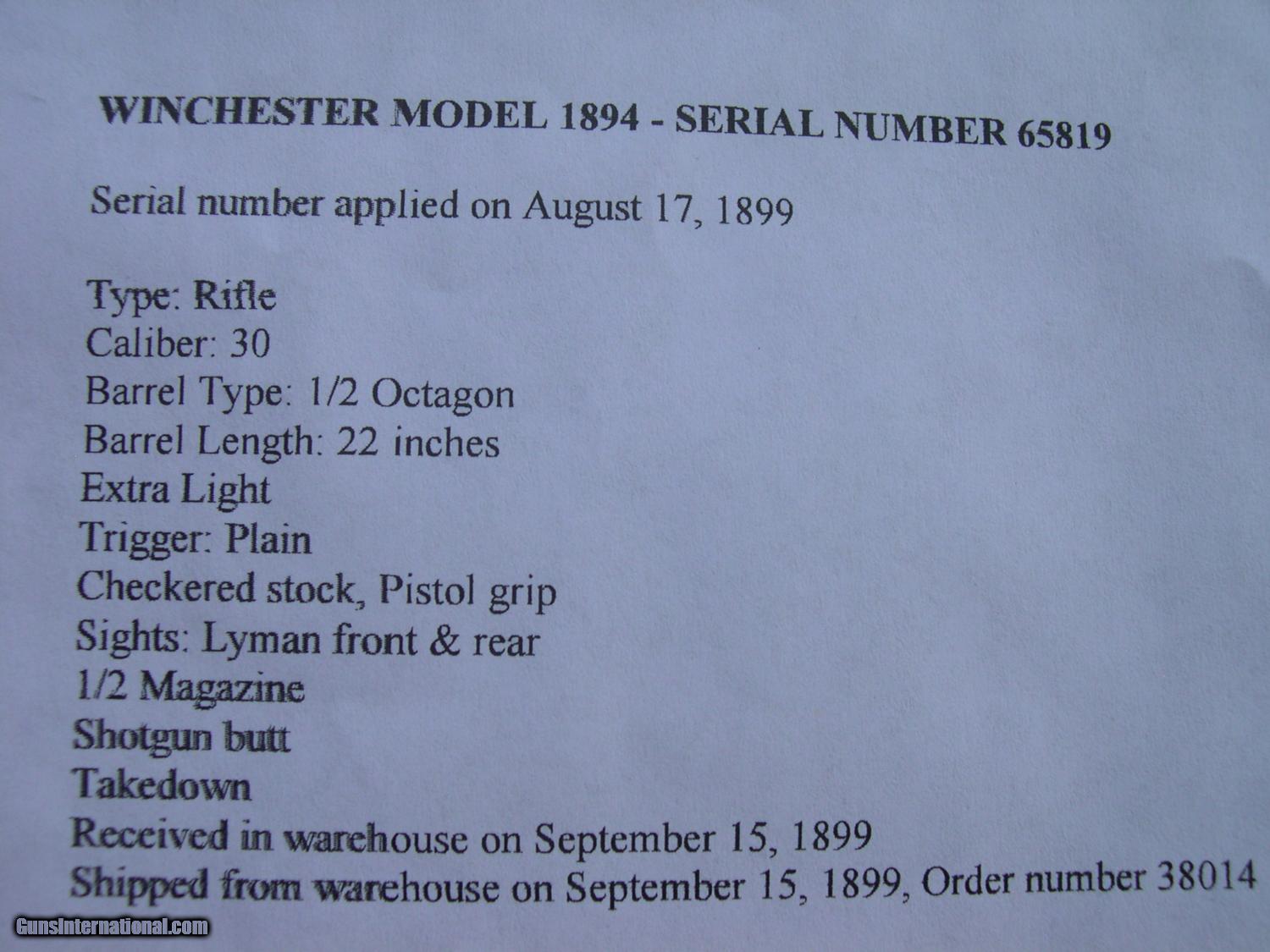 Winchester Antique Model 1894 Deluxe Take Down Extra Light Rifle 30WCF