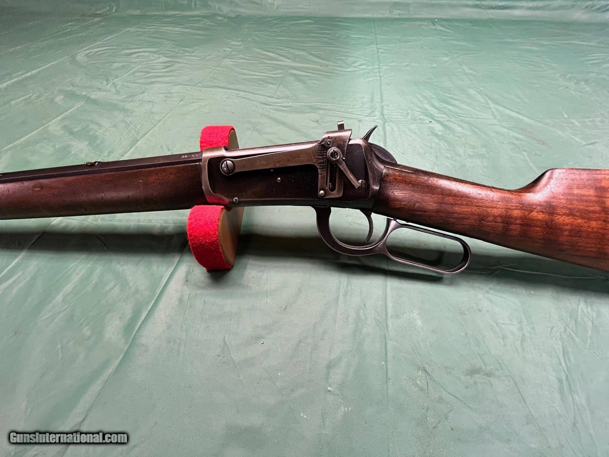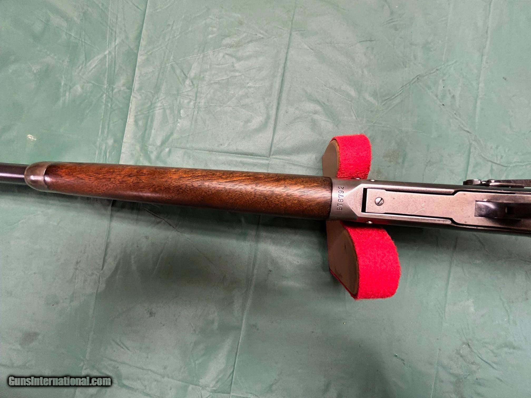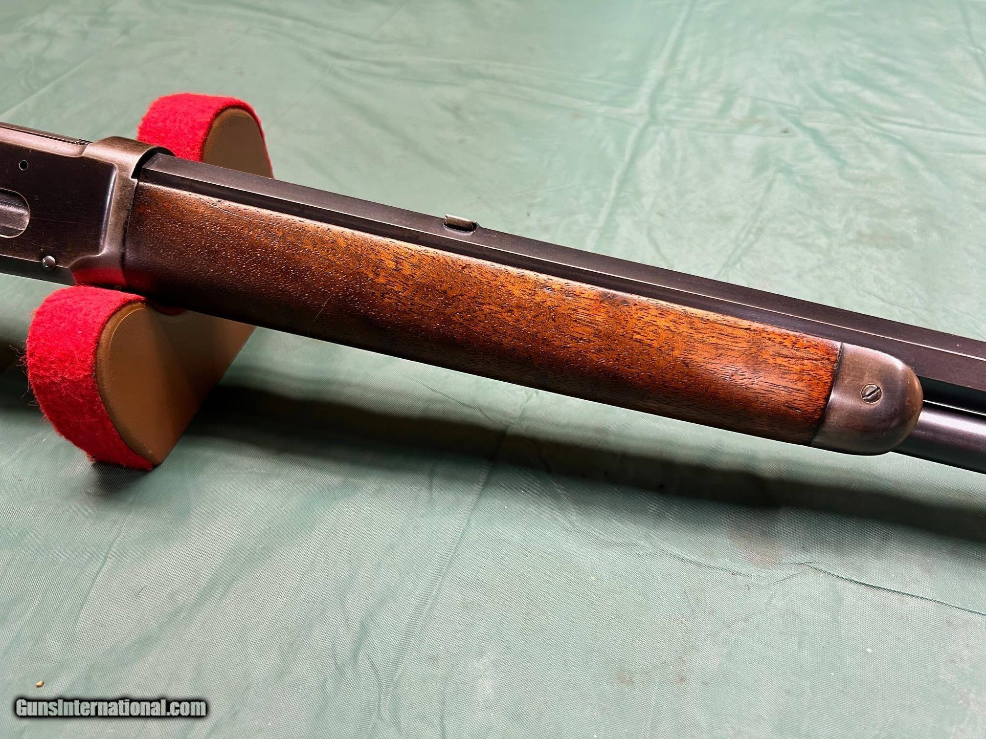 Description: SOLD. Special order short rifle in 38-55, 22" Oct BBL that retains very strong original blue and a bright shinny bore. Sites include Lyman front and blank rear with Lyman 21 receiver sight - "Climbing Lyman" This rifle is correct short riffle with 8 3/8 in forearm 1" - shorter than standard. A nice special order rifle in a great caliber. MFG in 1920 - Note the butt stock is refinished in my opinion and the forearm is correct. Price below plus $75.00 Shipping and Handling Click to see all Fitzgerald's Fine Guns SOLD Curio/Relic: Yes Serial Number: 878792 Manufacture Date: 1920 |