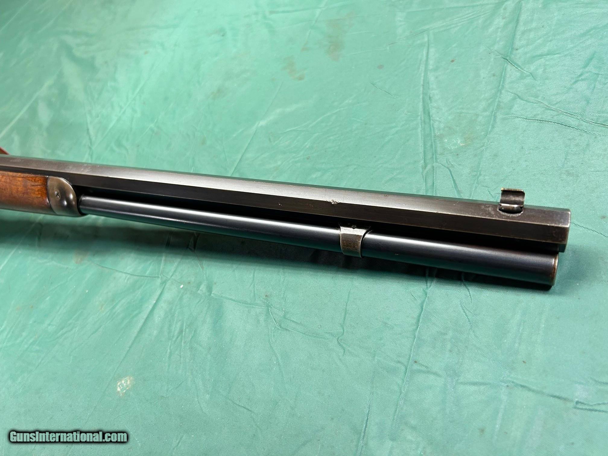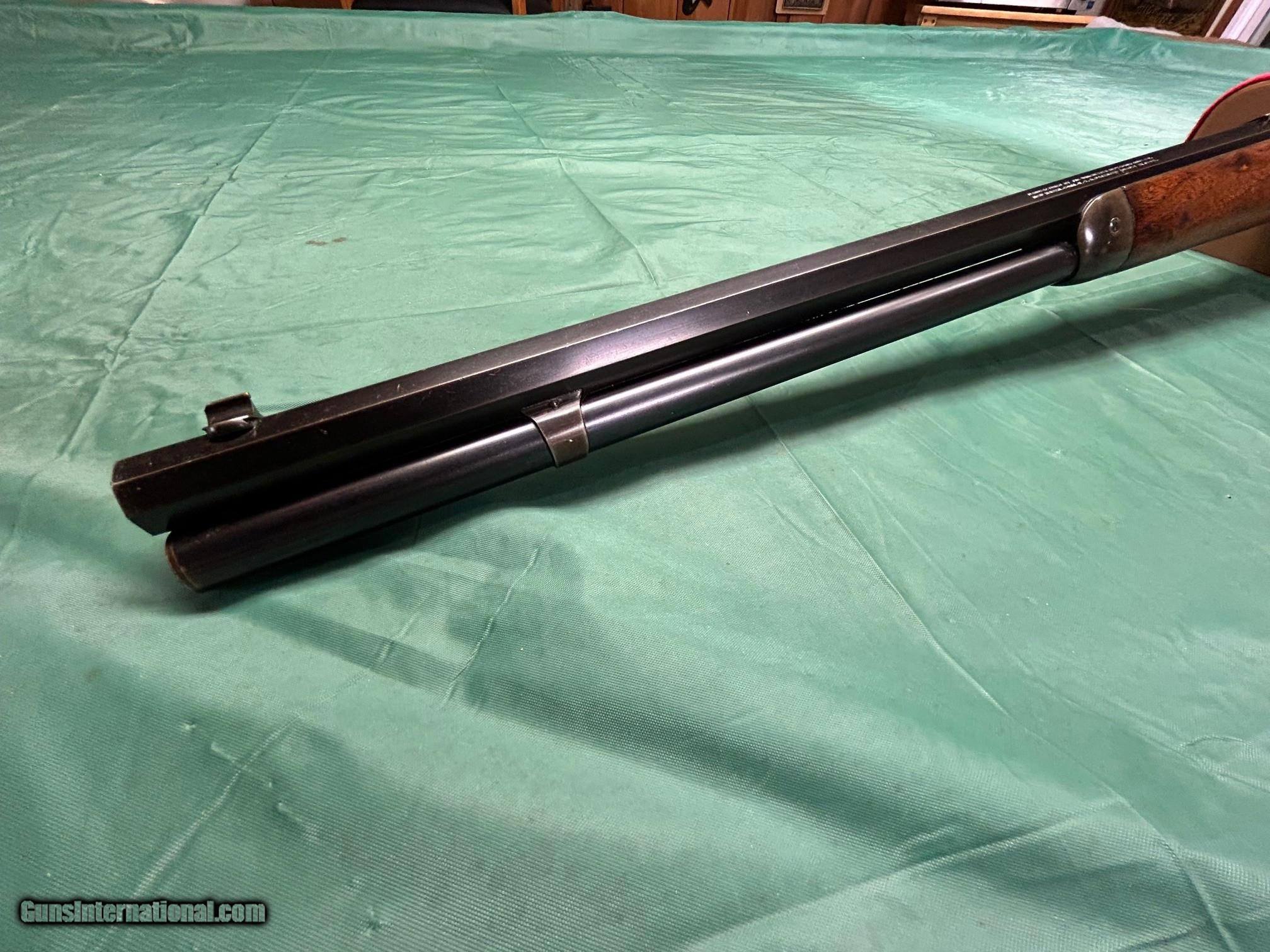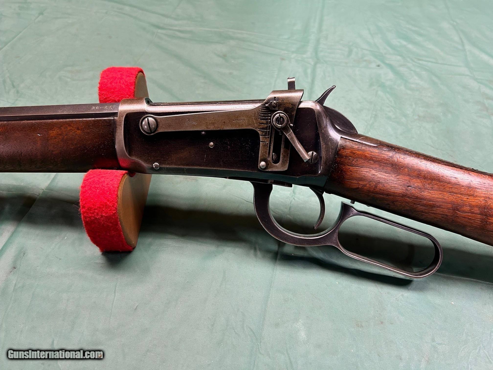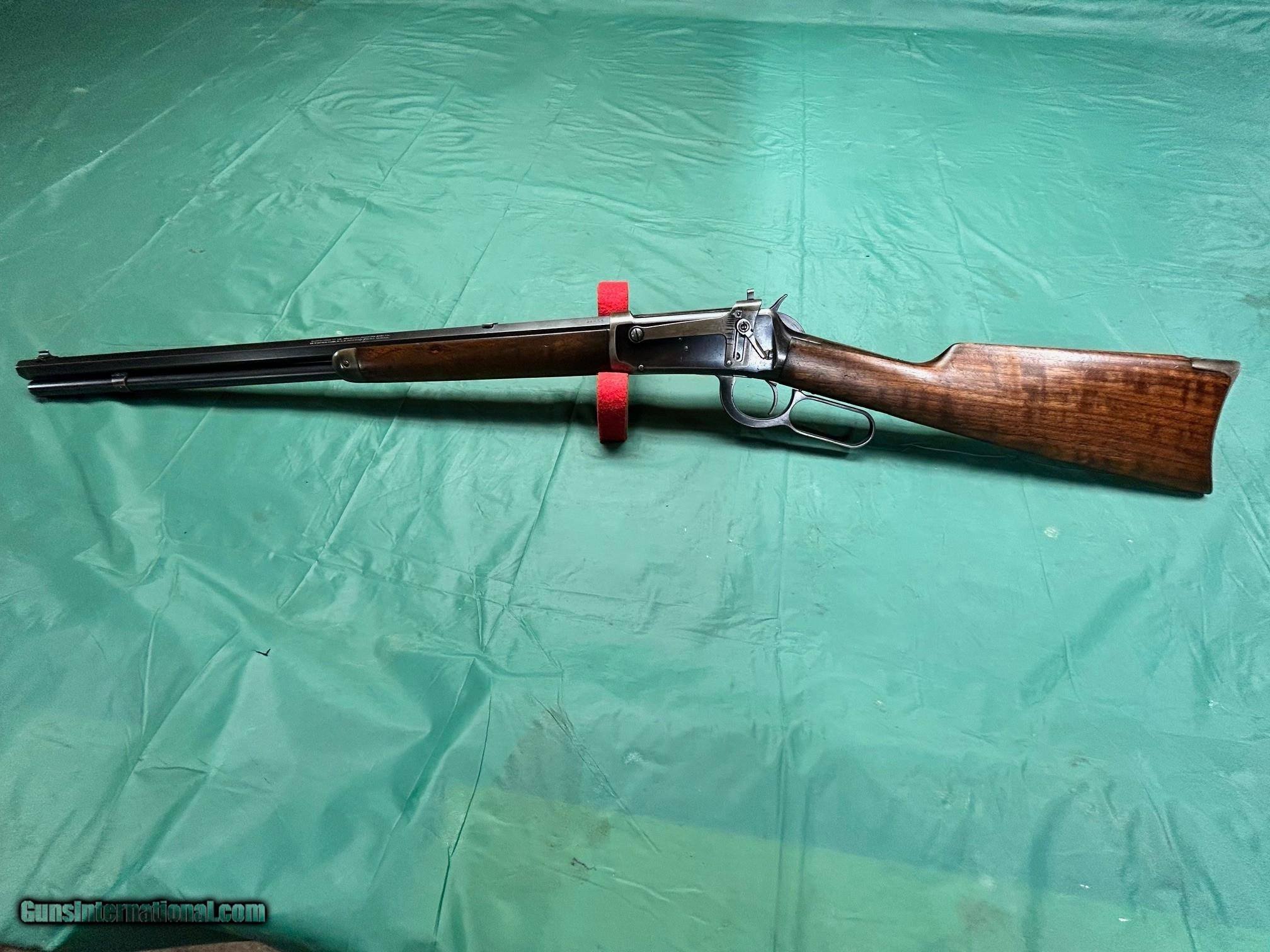 Description: SOLD. Special order short rifle in 38-55, 22" Oct BBL that retains very strong original blue and a bright shinny bore. Sites include Lyman front and blank rear with Lyman 21 receiver sight - "Climbing Lyman" This rifle is correct short riffle with 8 3/8 in forearm 1" - shorter than standard. A nice special order rifle in a great caliber. MFG in 1920 - Note the butt stock is refinished in my opinion and the forearm is correct. Price below plus $75.00 Shipping and Handling Click to see all Fitzgerald's Fine Guns SOLD Curio/Relic: Yes Serial Number: 878792 Manufacture Date: 1920 |