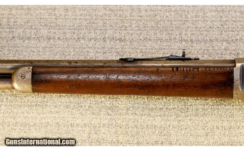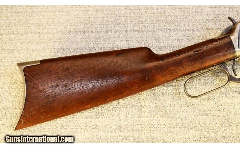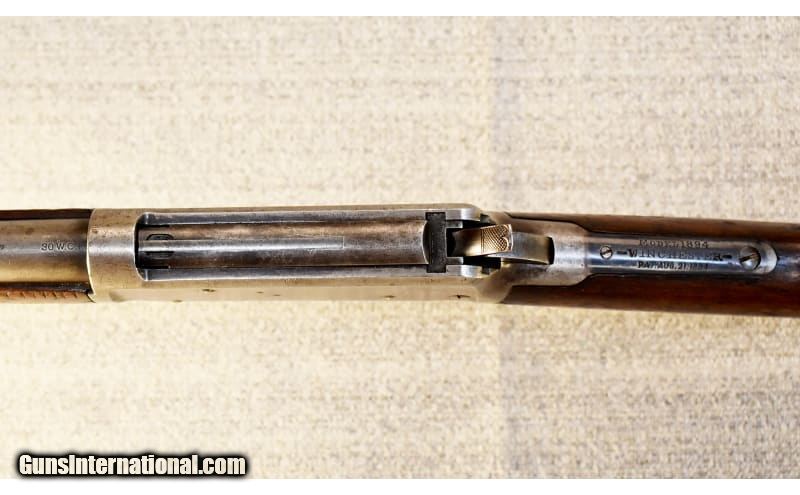 Description: This is a pre-owned Winchester model 1894 in .30 WCF dating to 1896 .30 WCF SOLD Antique: Yes Metal Condition: "Approximately 10% of the blue remains with widespread freckling, spotting and light patina Wood Condition: "Good overall condition, no cracks or splits, with noticeable handling wear including scratches, dents, scrapes and even several notches cut into the fore end Bore Condition: Slightly dark with strong lands Barrels: 26" round Stock Dimensions: 13" LOP Fore End: Smooth walnut Butt Pad: Crescent steel plate Weight: 7 lbs. 8 oz. Sights: "Blade front, step-adjustable semi-buckhorn rear Item Location: Glendale, AZ |