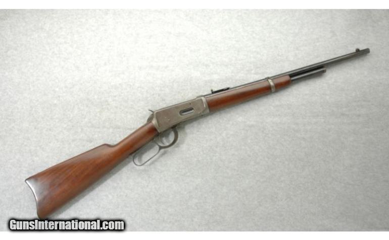 Description: SOLD Manufacturer: 1924 Caliber Info: .32-40 Chambers: Tube magazine. Metal Condition: Good. Shows some age/use/wear. Wood Condition: Good. Shows some age/use/wear. Bore Condition: Good. Barrels: 20 inches. Stock: Smooth walnut straight stock. Fore End: Smooth walnut with a barrel band. Butt Pad: Smooth steel crescent. Weight: 6 lbs. 2 oz. Sights: Short blade front. Adjustable semi-buckhorn rear. Item Location: Richfield, WI |